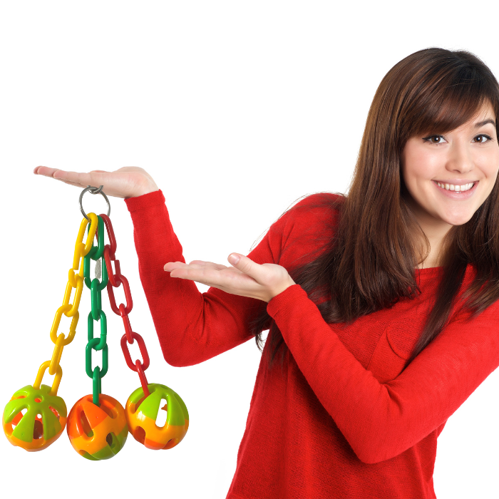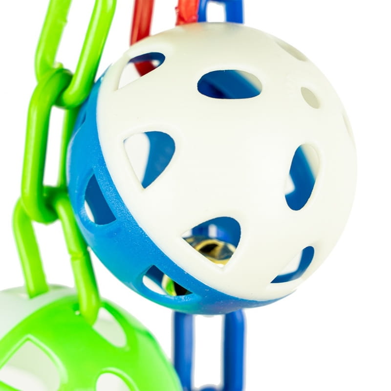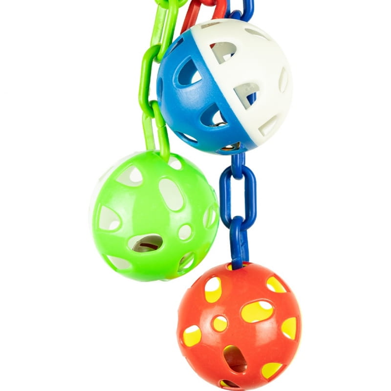 3 piłeczki z grzechotką na kolorowych Łańcuszkach - zabawka dla średnich i dużych papug