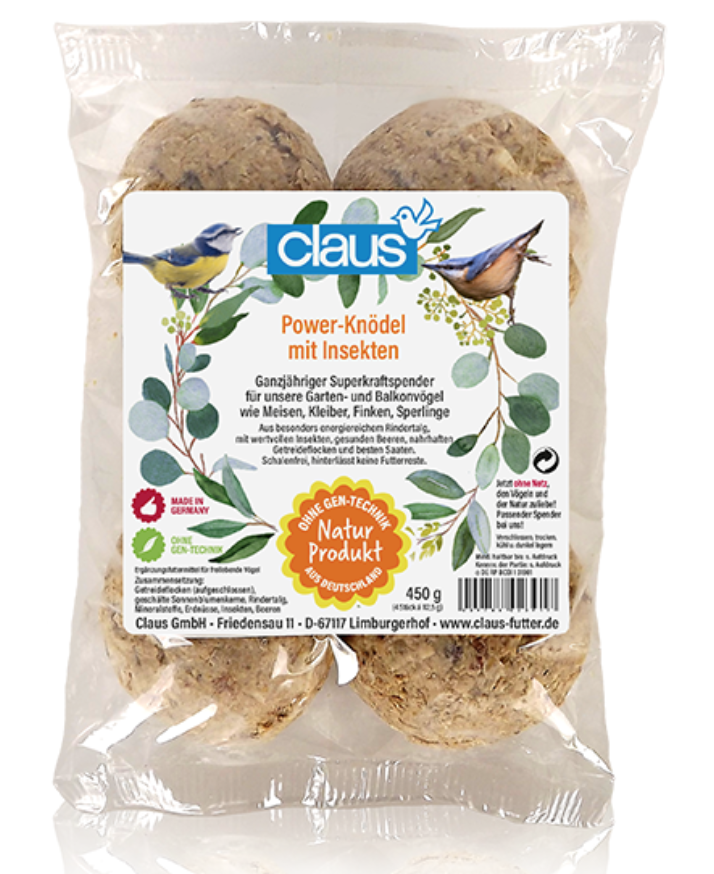 Kule tłuszczowe Claus dodatkowo w składzie mają owady, dlatego są szczególnie bogate w energię i pożywne: składają się z czystego łoju wołowego, pożywnych płatków zbożowych, oraz z dużej części obranych nasion słonecznika i orzeszków ziemnych. Dostarczają wartościowego białka i wysoko przyswajalnego tłuszczu. Zdrowe jagody, takie jak sułtanki, dostarczają witamin, a cenne owady dostarczają białka zwierzęcego. Owady w naturze coraz bardziej giną, ale są ważnym źródłem pożywienia nie tylko dla młodych ptaków, ale także dla wrażliwych miękkojadów.