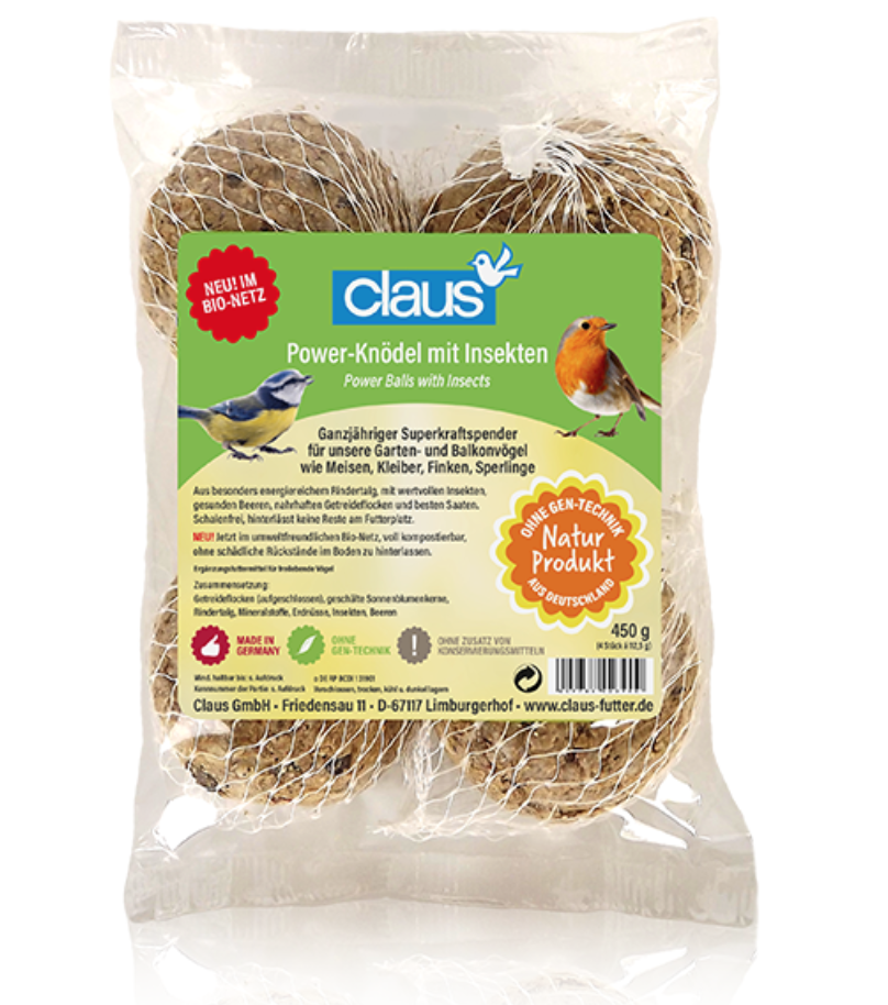 Kule tłuszczowe Claus dodatkowo w składzie mają owady, dlatego są szczególnie bogate w energię i pożywne: składają się z czystego łoju wołowego, pożywnych płatków zbożowych, oraz z dużej części obranych nasion słonecznika i orzeszków ziemnych. Dostarczają wartościowego białka i wysoko przyswajalnego tłuszczu. Zdrowe jagody, takie jak sułtanki, dostarczają witamin, a cenne owady dostarczają białka zwierzęcego. Owady w naturze coraz bardziej giną, ale są ważnym źródłem pożywienia nie tylko dla młodych ptaków, ale także dla wrażliwych miękkojadów.