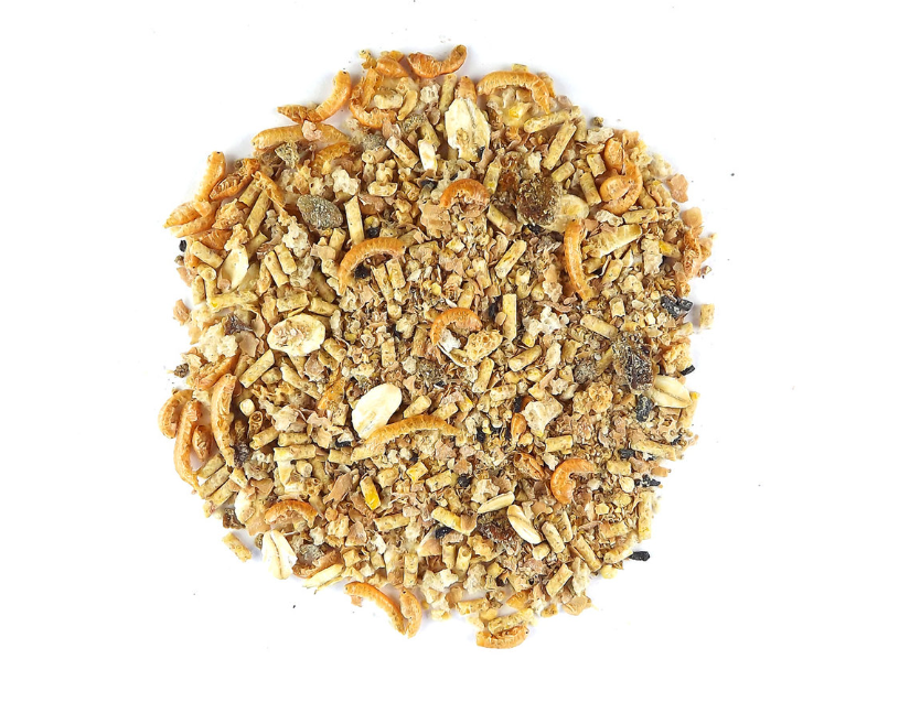 Wysokiej jakości białko zwierzęce: Karma zawiera cenne suszone owady i małe kraby, które dostarczają ptakom ozdobnym wysokiej jakości białka zwierzęcego. To niezbędne dla prawidłowego rozwoju mięśni i ogólnej kondycji ptaków.