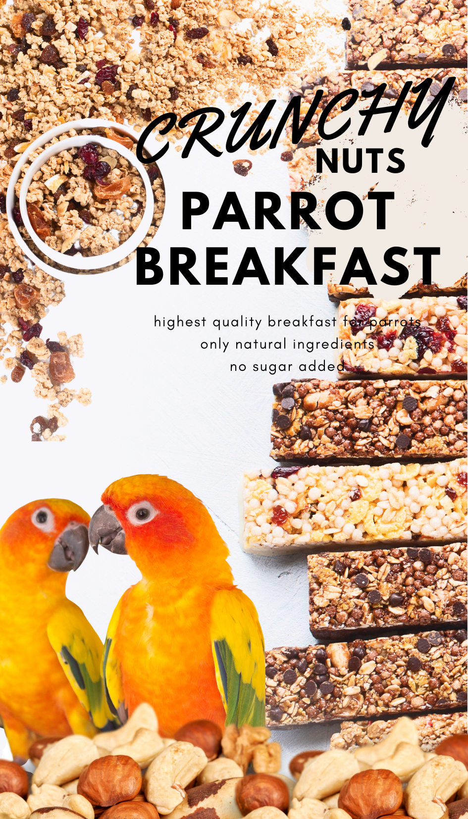 Crunchy Nuts Parrot Breakfast | Papuzie danie śniadaniowe, lub obiadowe | Pokarm dla papug na ciepło lub zimno 100g