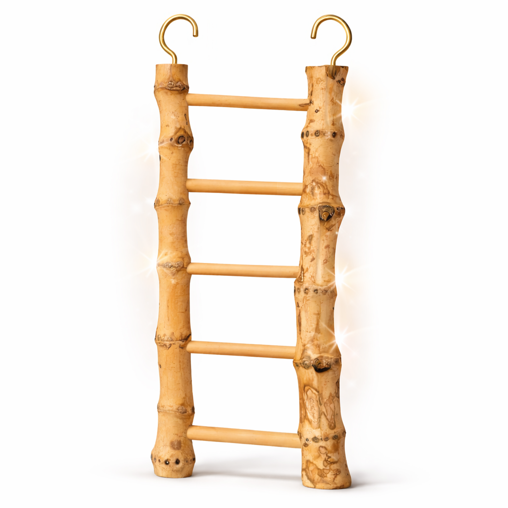 Drabinka Bambusowa to minimalistyczna, w pełni naturalna konstrukcja, która daje papudze możliwość wspinania się, przemieszczania między poziomami klatki i aktywnego spędzania czasu.
