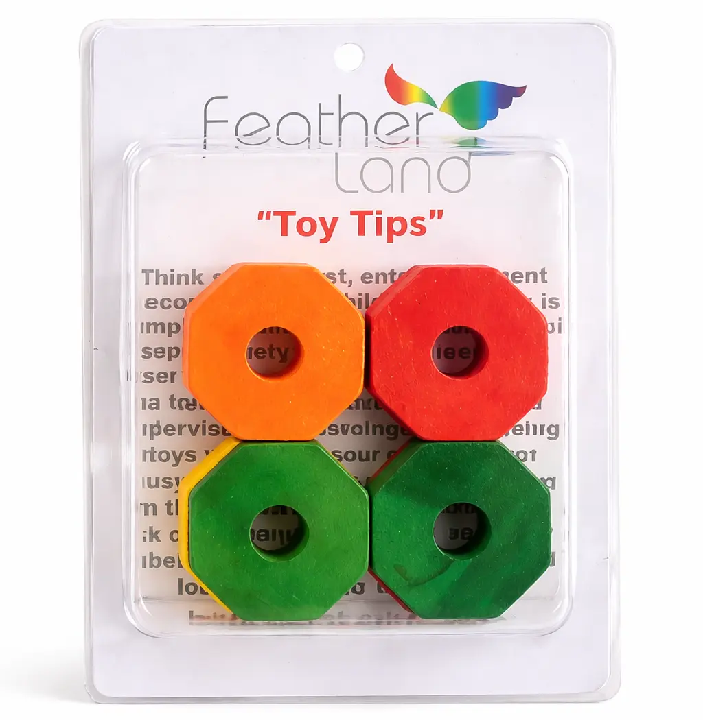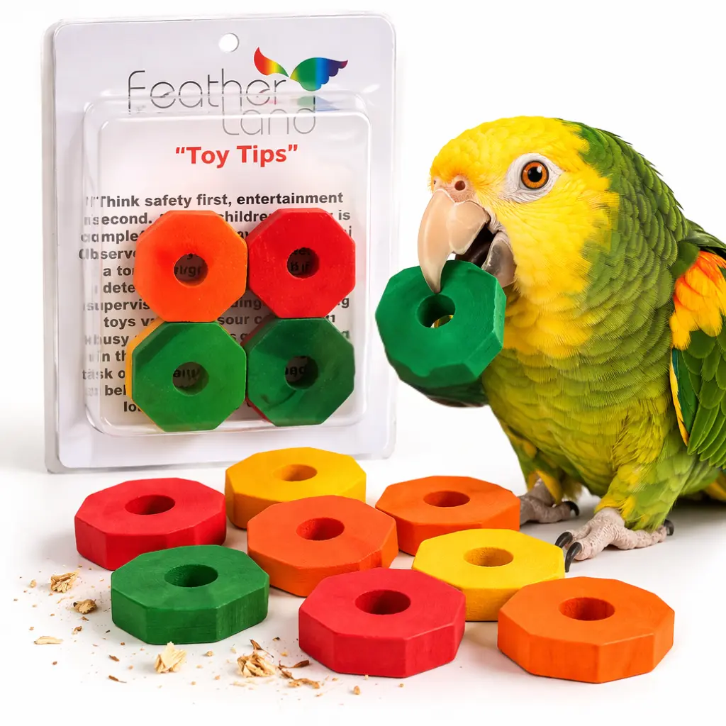 Kostki wykonane są z drewna barwionego barwnikami spożywczymi, dzięki czemu są bezpieczne dla papug i mogą być swobodnie gryzione oraz rozdrabniane.