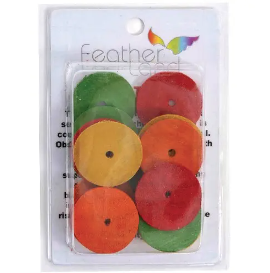 Dyski drewniane L są wykonane z wysokiej jakości drewna i barwników spożywczych, zapewniając bezpieczne i nietoksyczne materiały dla Twojego pierzastego przyjaciela.