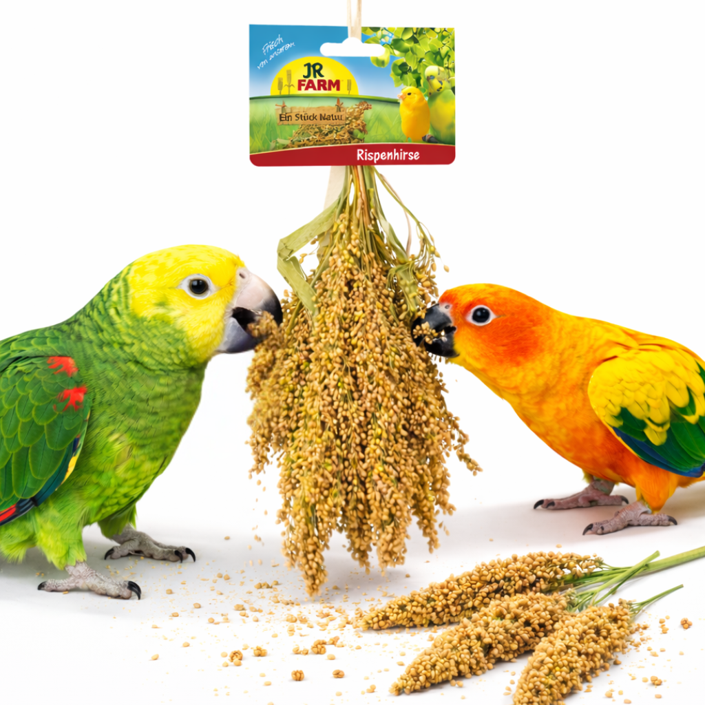 JR FARM Proso Rozpierzchłe w kłosach to jednoskładnikowa, naturalna przekąska dla wszystkich papug. Kłosy zachowują swoją naturalną strukturę, dzięki czemu papuga musi samodzielnie wydobywać ziarna, co wydłuża czas jedzenia i zwiększa zaangażowanie.