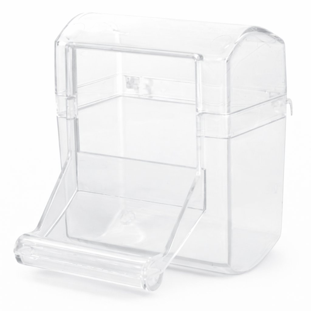 Zamiast codziennego zamiatania rozsypanych ziaren, zyskujesz większą kontrolę nad porządkiem i higieną. Karmnik wykonany jest z trwałego, bezpiecznego akrylu odpornego na codzienne użytkowanie.