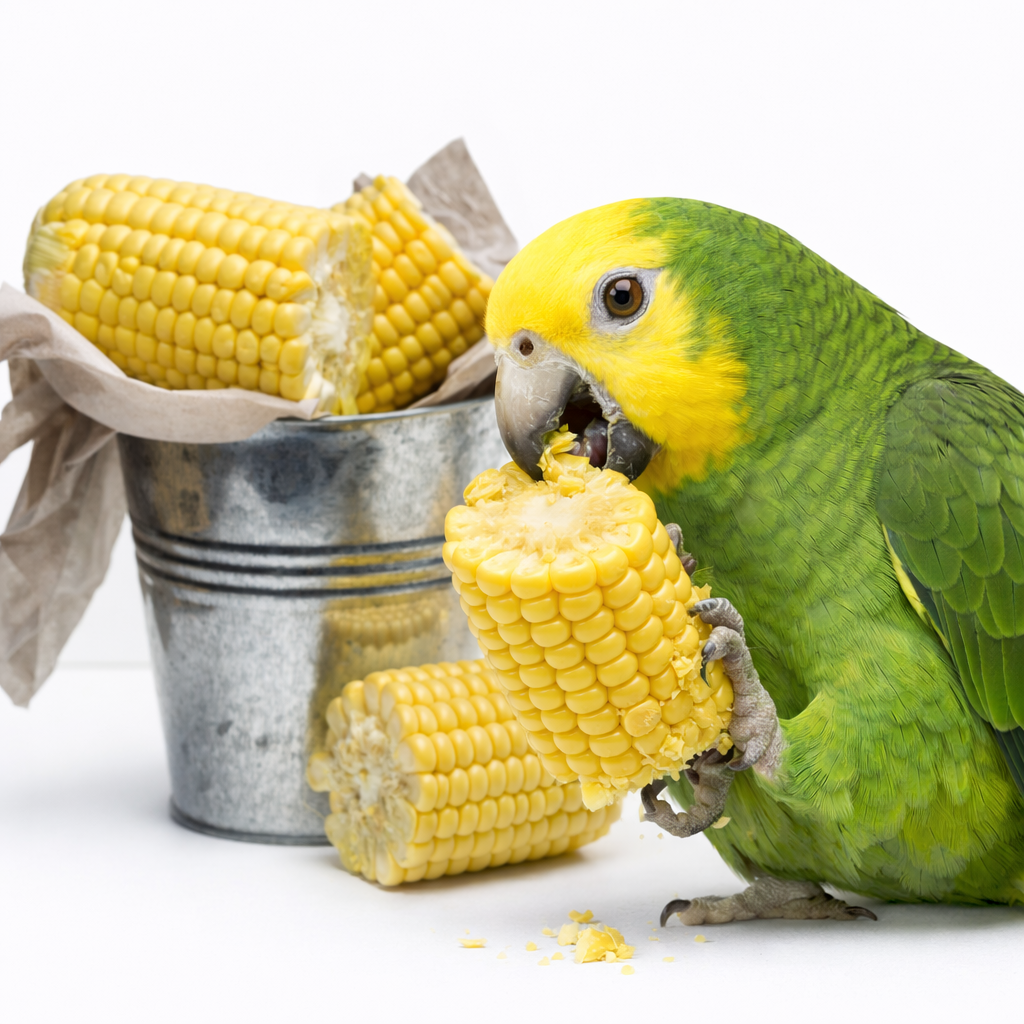 Kukurydza do łapki to klasyczna przekąska, którą papugi uwielbiają – mogą ją trzymać w łapce, obracać i stopniowo wyjadać ziarno.