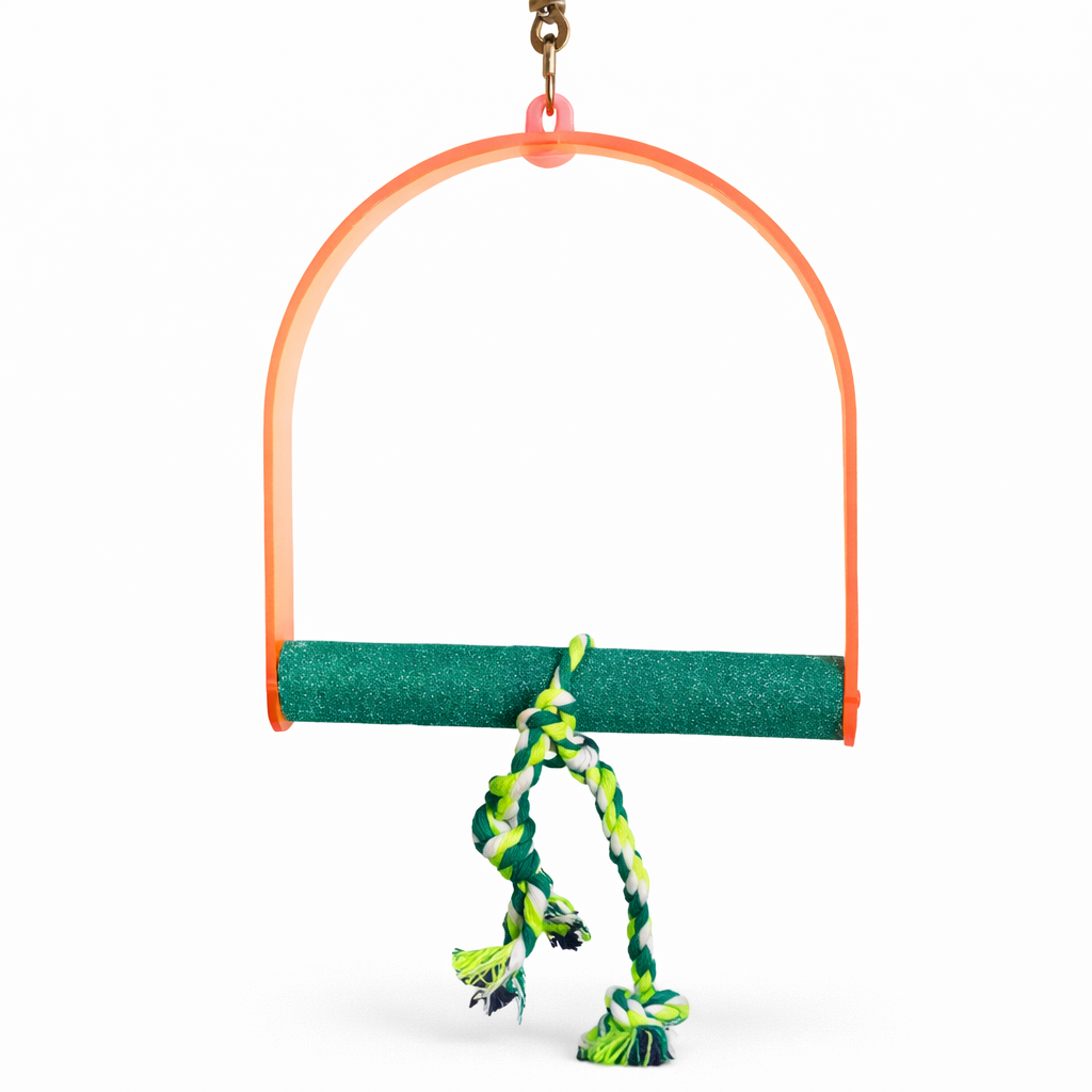 Large Swing to rozbudowana huśtawka zaprojektowana z myślą o papugach średnich i dużych, które potrzebują mocnych, stabilnych elementów wyposażenia klatki. Transparentna konstrukcja z wytrzymałego akrylu nadaje lekkości wizualnej, a jednocześnie zapewnia trwałość przy codziennym użytkowaniu.