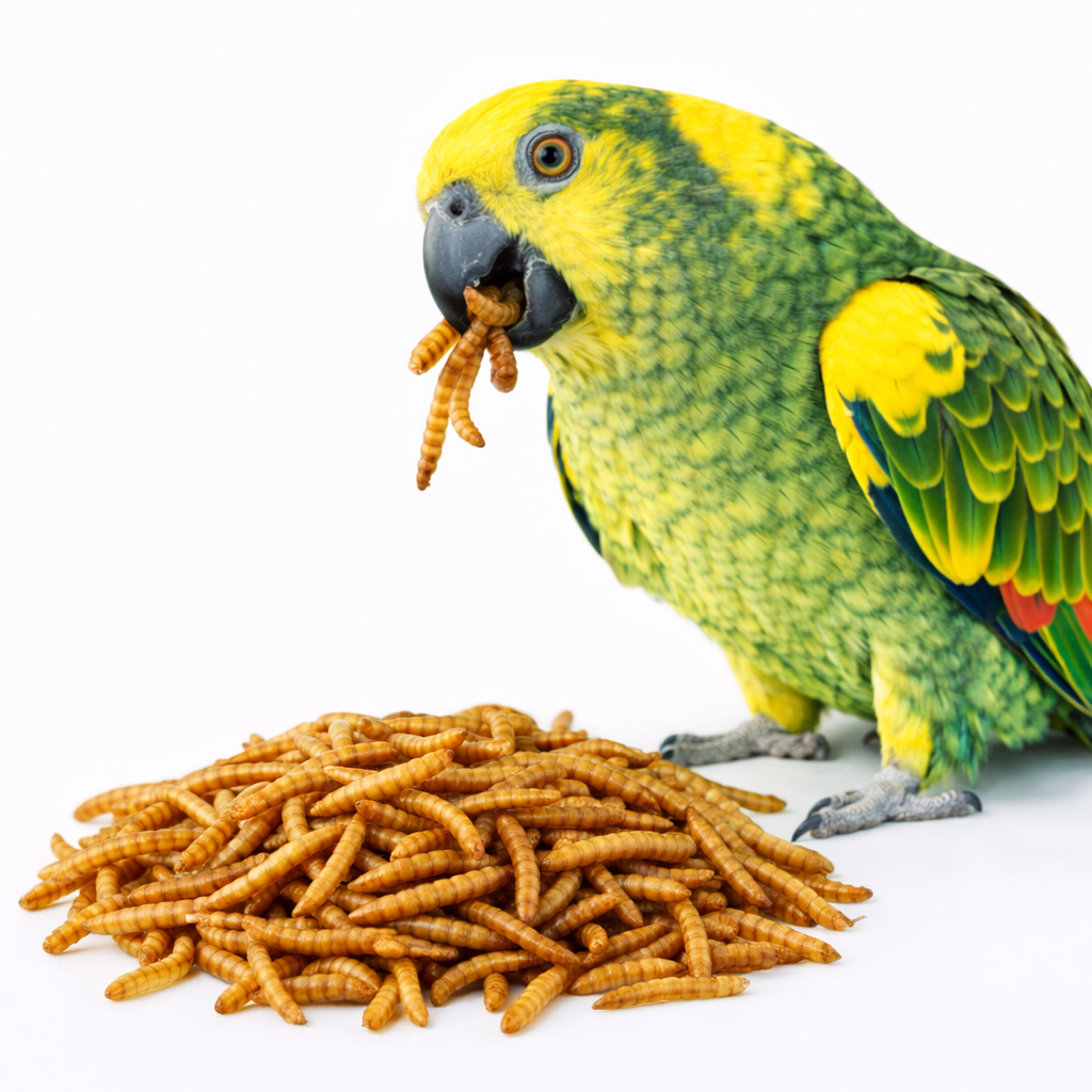 Wybierz larwy mącznika i zadbaj o zdrową dietę swojej papugi.