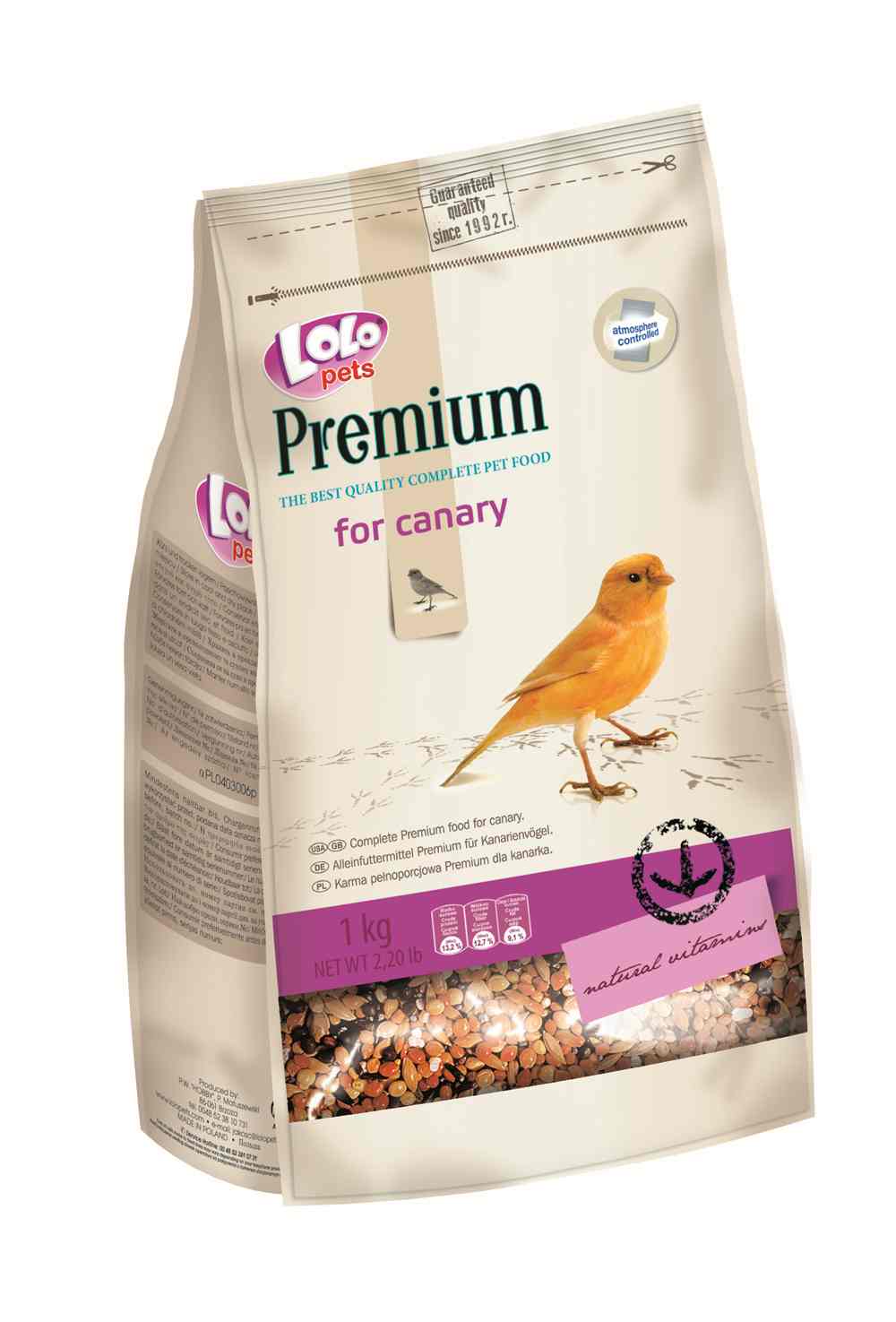 LoLo Pets PrREMIUM 1kg pokarm dla KANARKA to mieszanka najwyższej jakości ziaren, zbilansowana tak, aby w pełni zaspokajać potrzeby żywieniowe KANARKÓW.