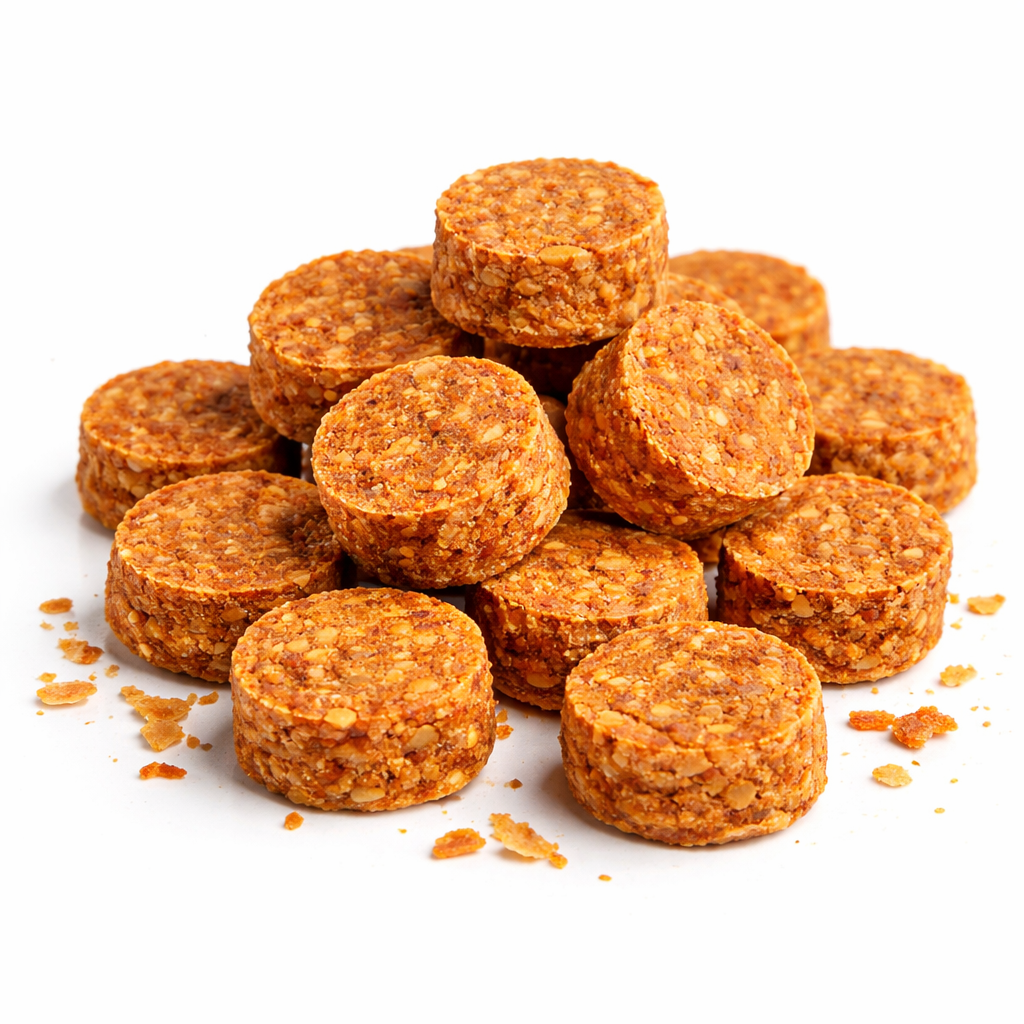 Marcheweczki Pełne Zdrowia to naturalna, warzywna przekąska przeznaczona dla gryzoni i królików. Wykonane na bazie suszonej marchwi z dodatkiem siemienia lnianego i bazylii, stanowią smaczne urozmaicenie codziennej diety oraz atrakcyjny przysmak podawany okazjonalnie.
