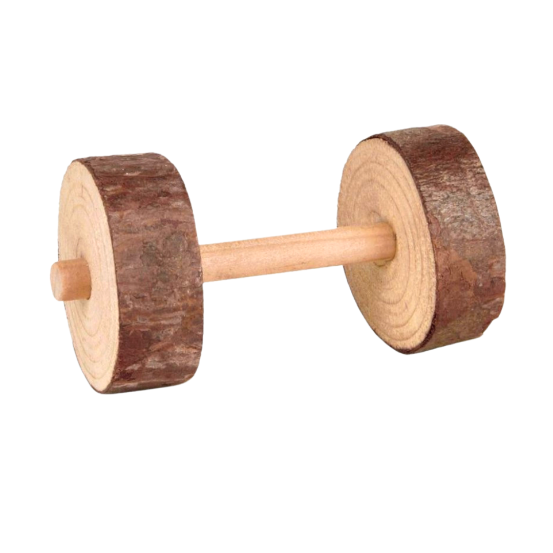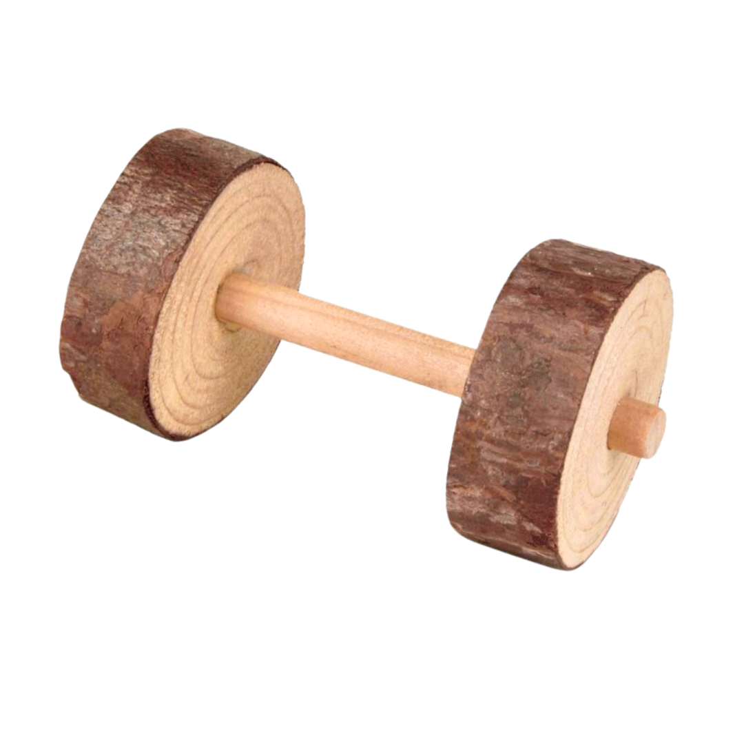 Mini hantle to klasyczna, drewniana zabawka do trzymania w łapce, która doskonale odpowiada na naturalne potrzeby papug. Prosta forma i poręczny rozmiar sprawiają, że ptaki chętnie chwytają ją, obracają i podgryzają.