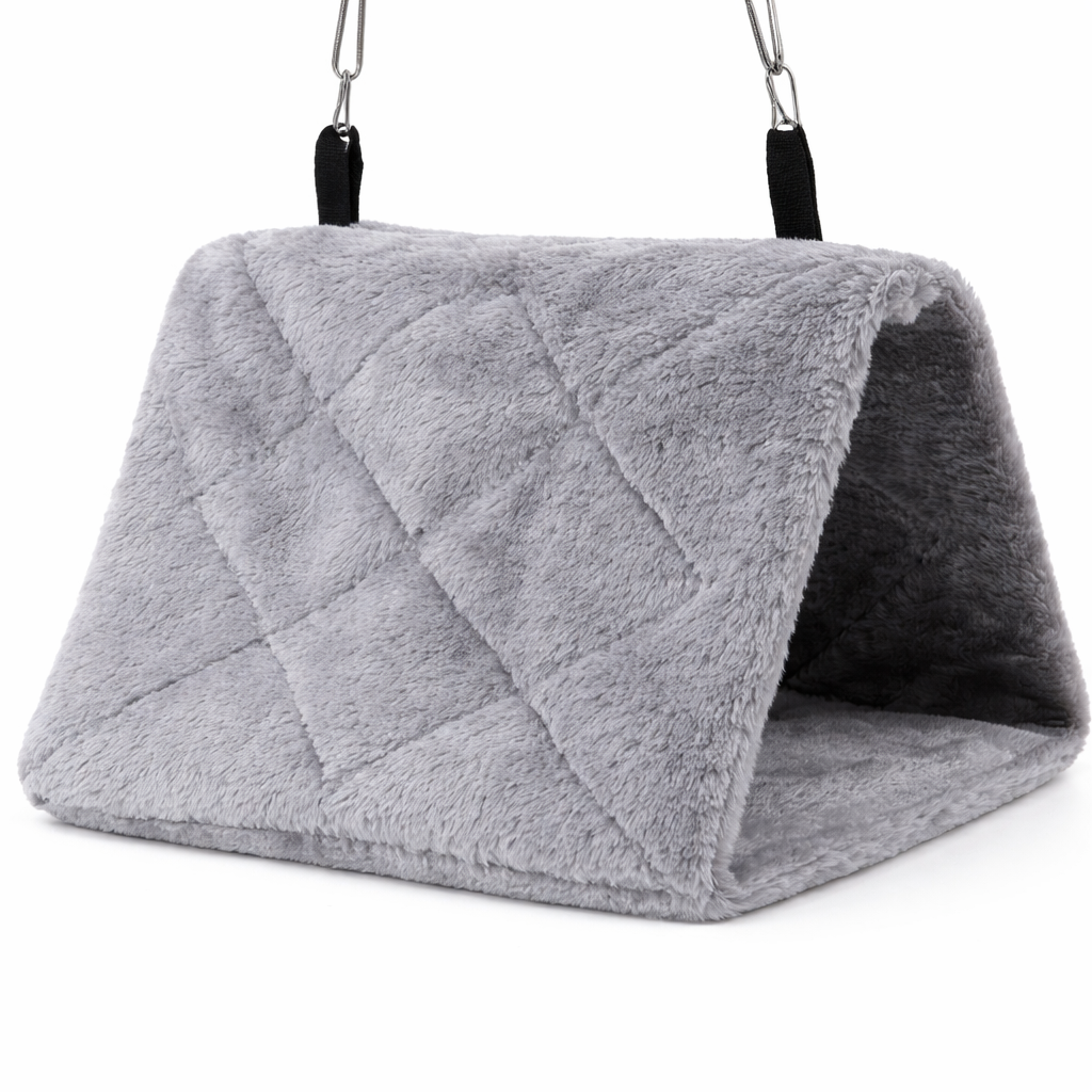 Stabilne mocowanie pozwala łatwo zawiesić namiot w klatce. Konstrukcja jest lekka, ale jednocześnie wystarczająco sztywna, aby utrzymać kształt.