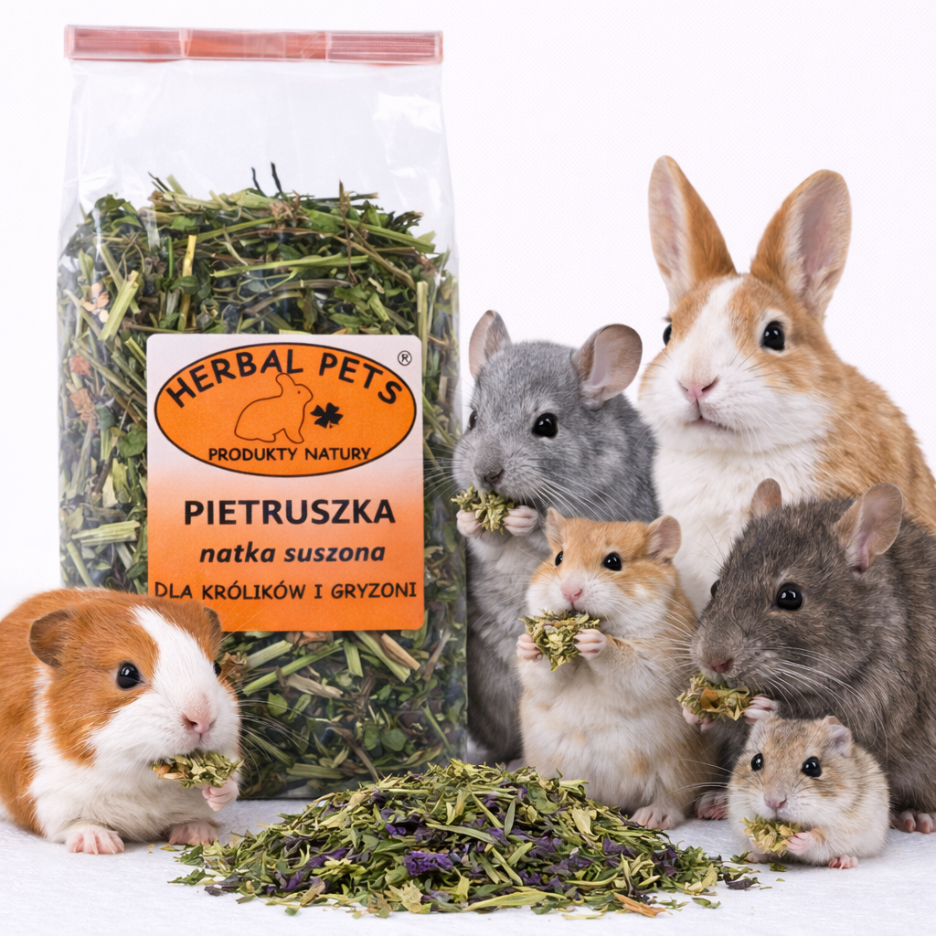 Natka pietruszki suszona to doskonały dodatek do diety królików i gryzoni, który działa korzystnie na układ trawienny, pobudzając wydzielanie soków żołądkowych. Dodatkowo, jest bogatym źródłem witaminy C, która wspomaga odporność i ogólną kondycję zdrowotną.