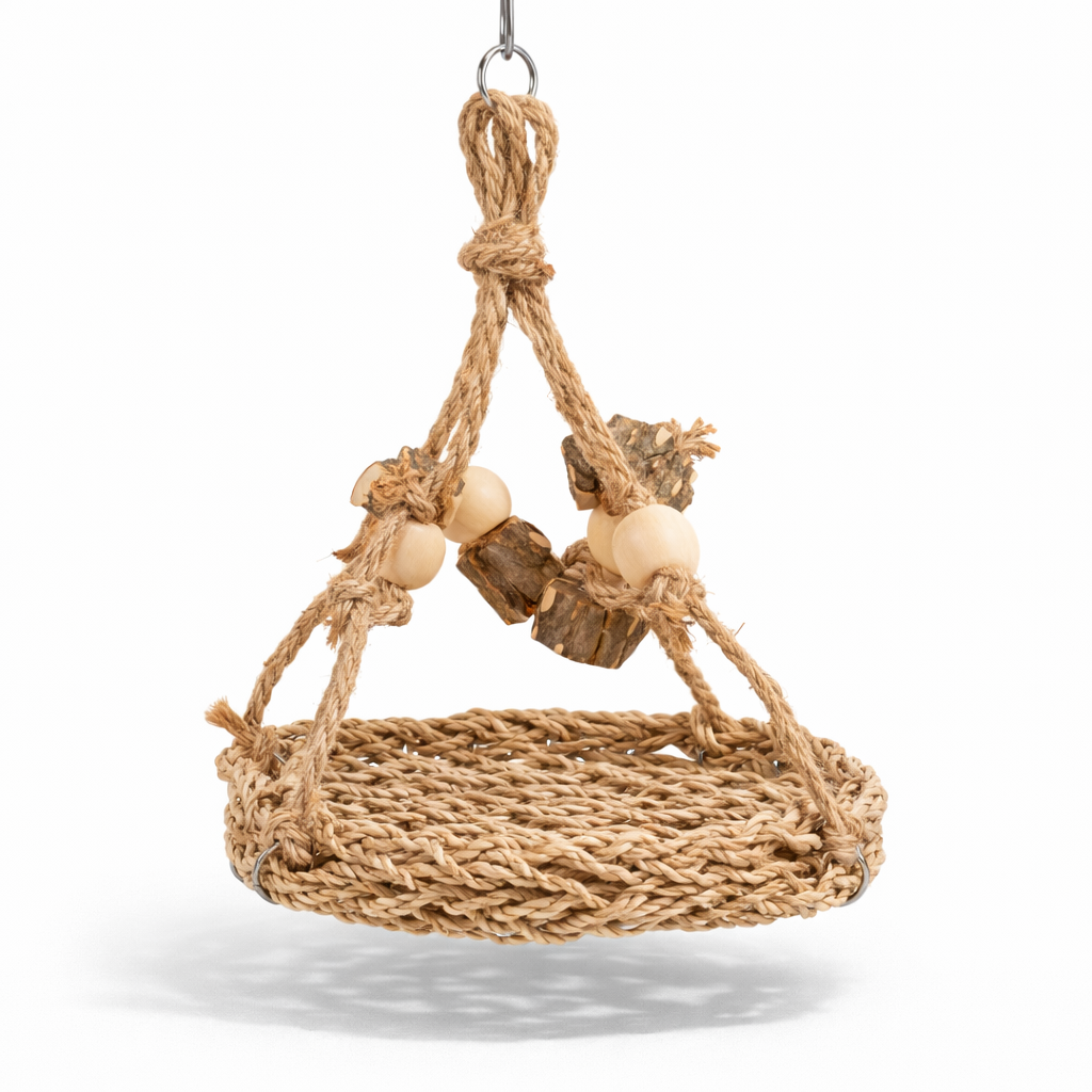 Naturalna Huśtawka z Trawy Morskiej to prosta, funkcjonalna zabawka, która łączy trzy potrzeby: bujanie, gryzienie i odpoczynek. Elastyczna struktura trawy morskiej delikatnie pracuje pod ciężarem ptaka, angażując mięśnie stóp i wspierając ich kondycję.