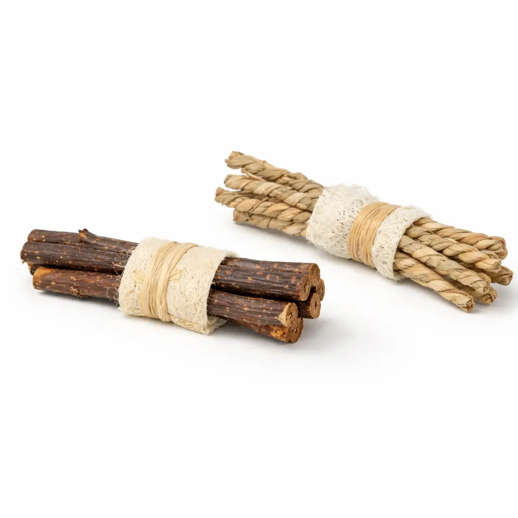 Zestaw patyków to lekka, naturalna zabawka, która pozwala papudze gryźć, rozdrabniać i manipulować różnymi materiałami.