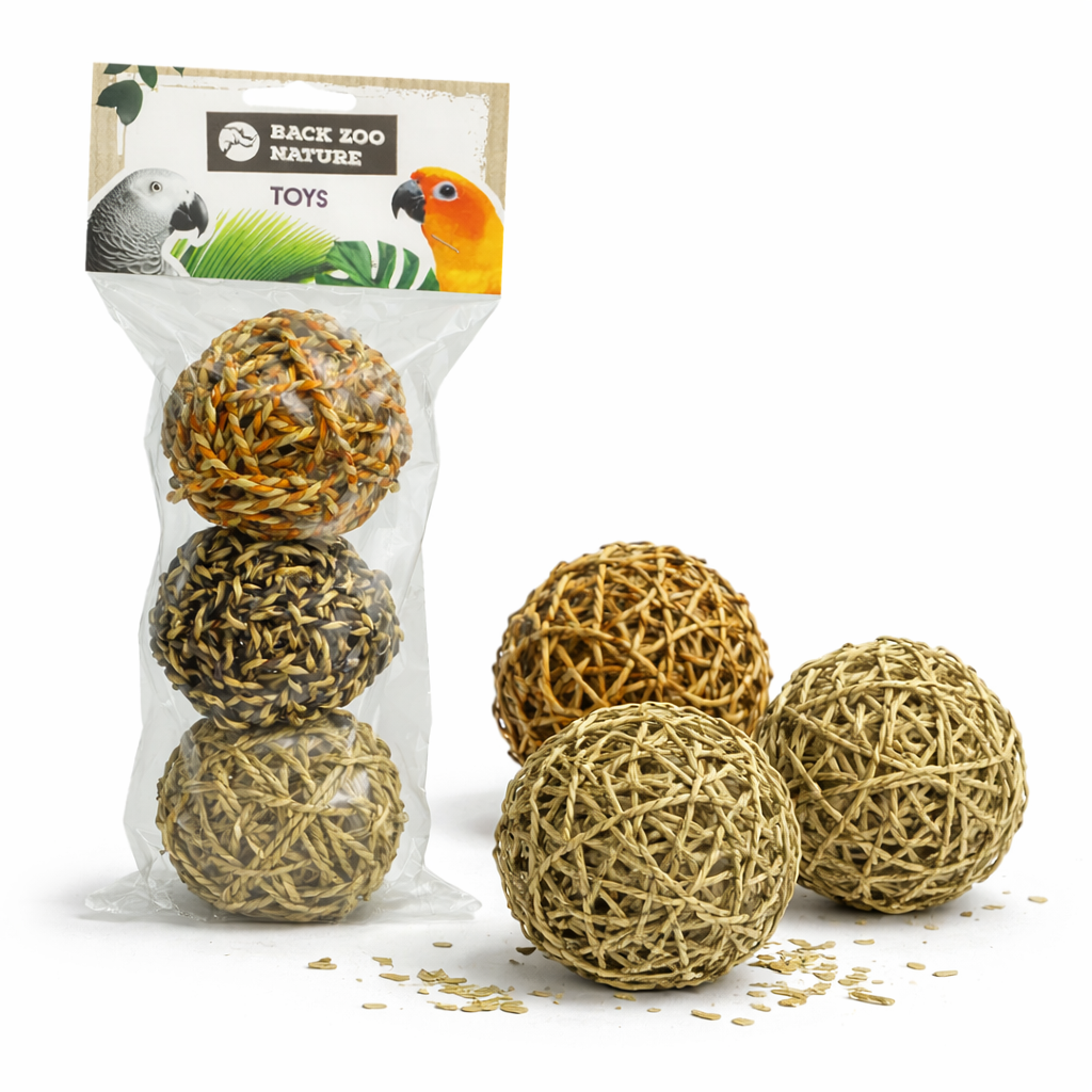 Naturalne Piłki z Trawy Morskiej to prosta, ale niezwykle angażująca zabawka dla papug. Wykonane w 100% z naturalnej trawy morskiej, są bezpieczne, lekkie i idealne do chwytania w łapkę.