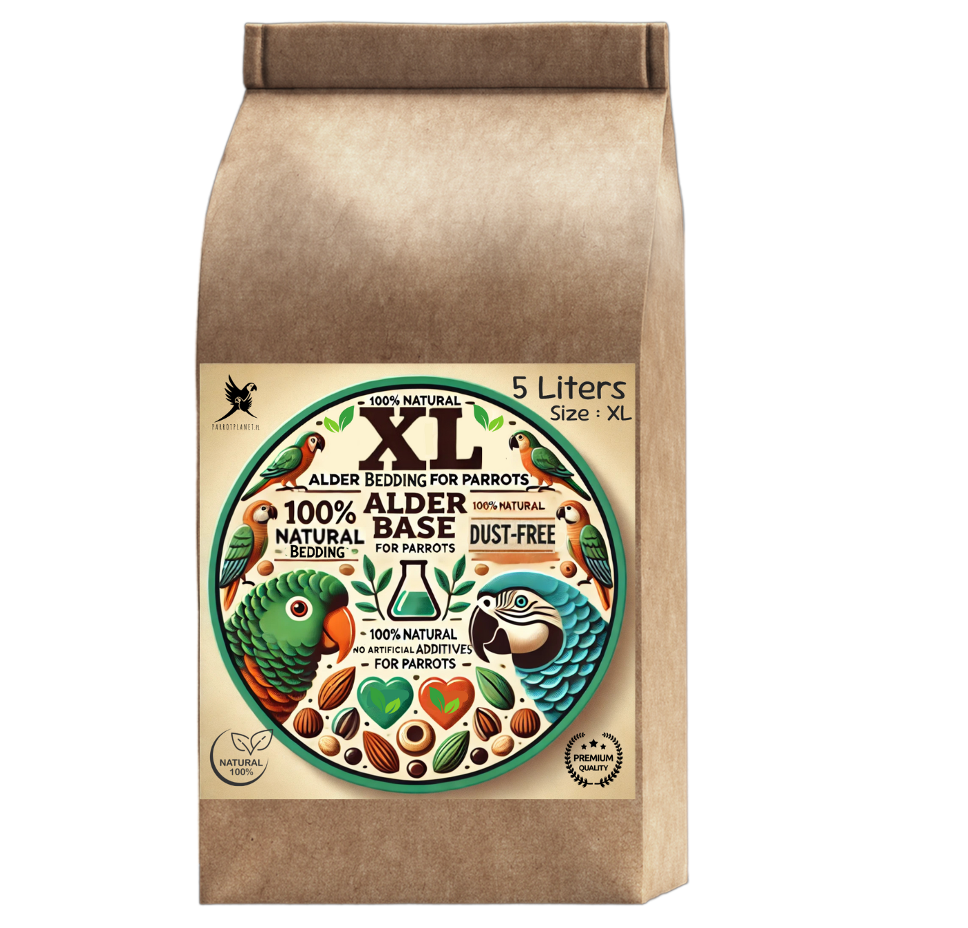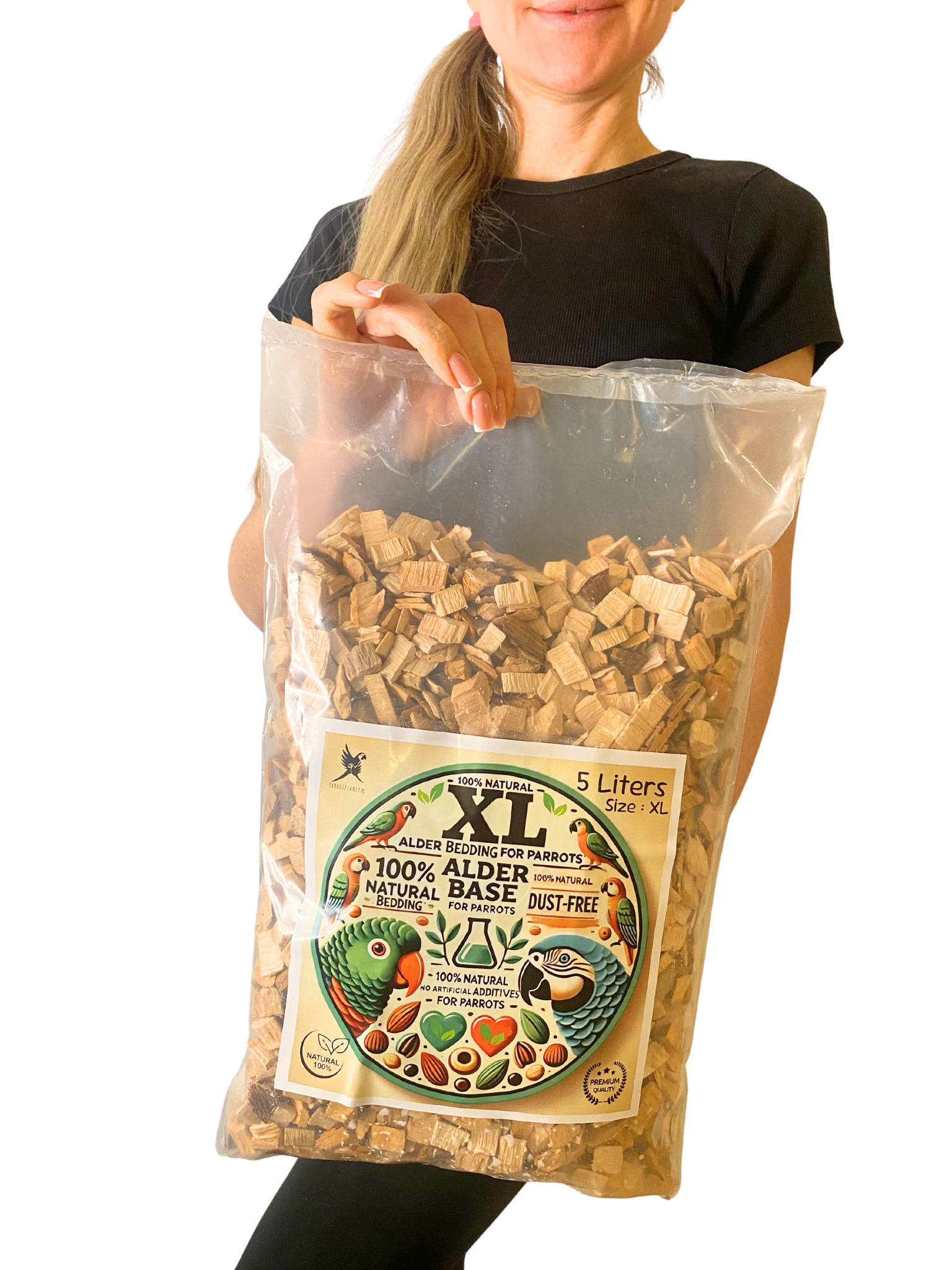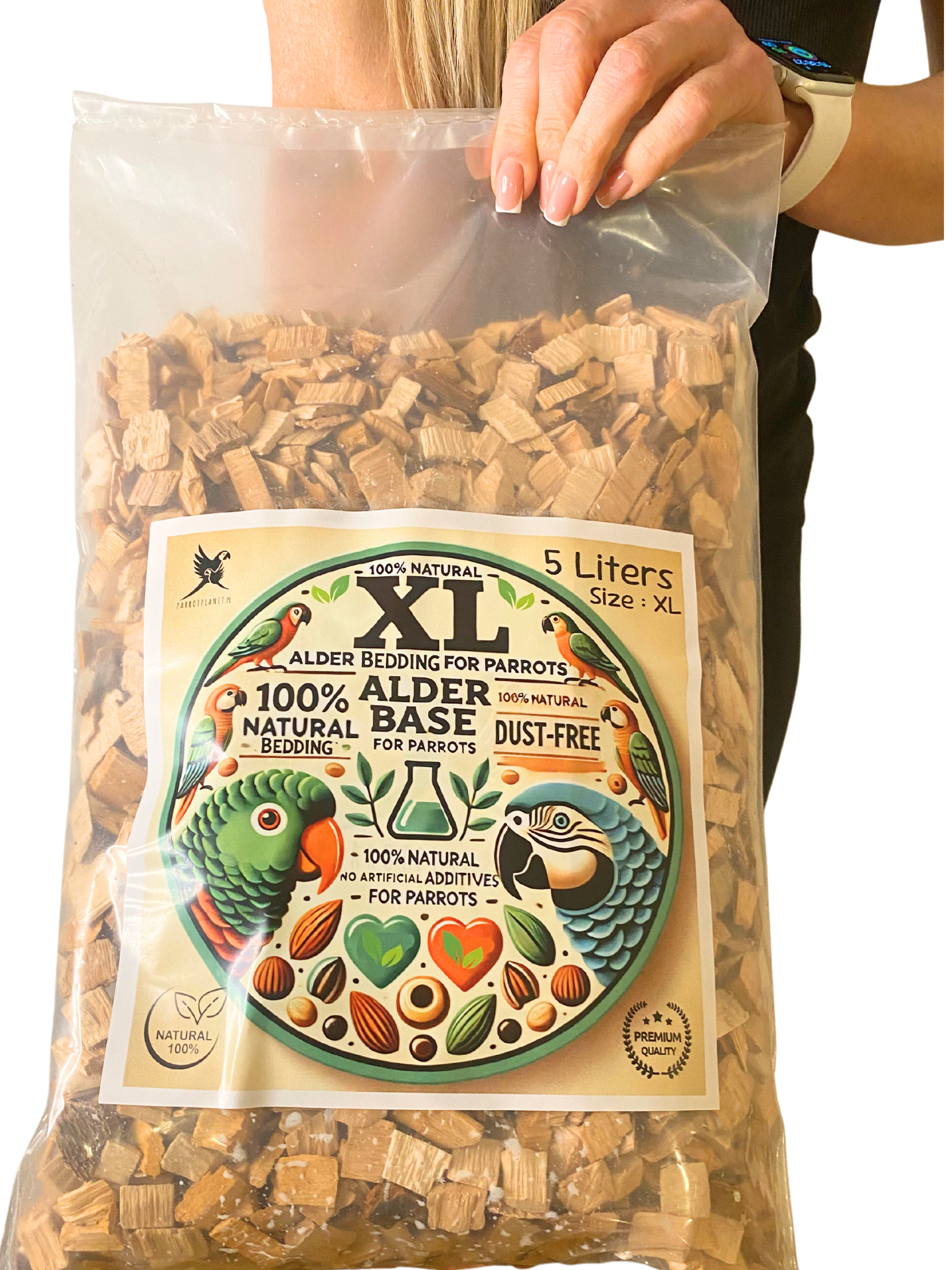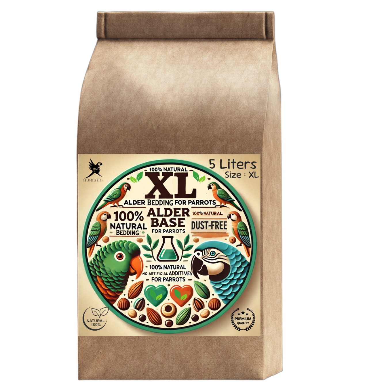 Olchowe Zrębki, Rozmiar XL – Naturalne Podłoże dla Dużych Papug, 5 litrów