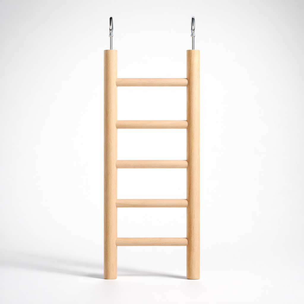 Papuzia Wspinaczka to drewniana huśtawka-drabinka zaprojektowana z myślą o mniejszych ptakach, które potrzebują codziennej aktywności w klatce.