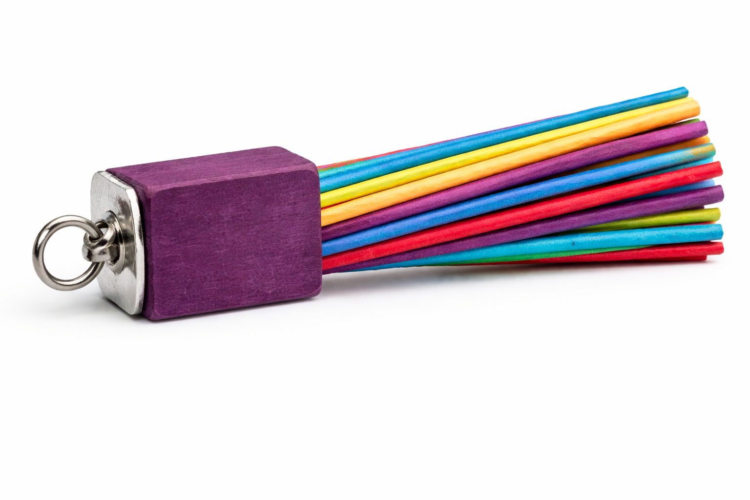 drewno naturalne, barwione patyczki drewniane, metalowe mocowanie