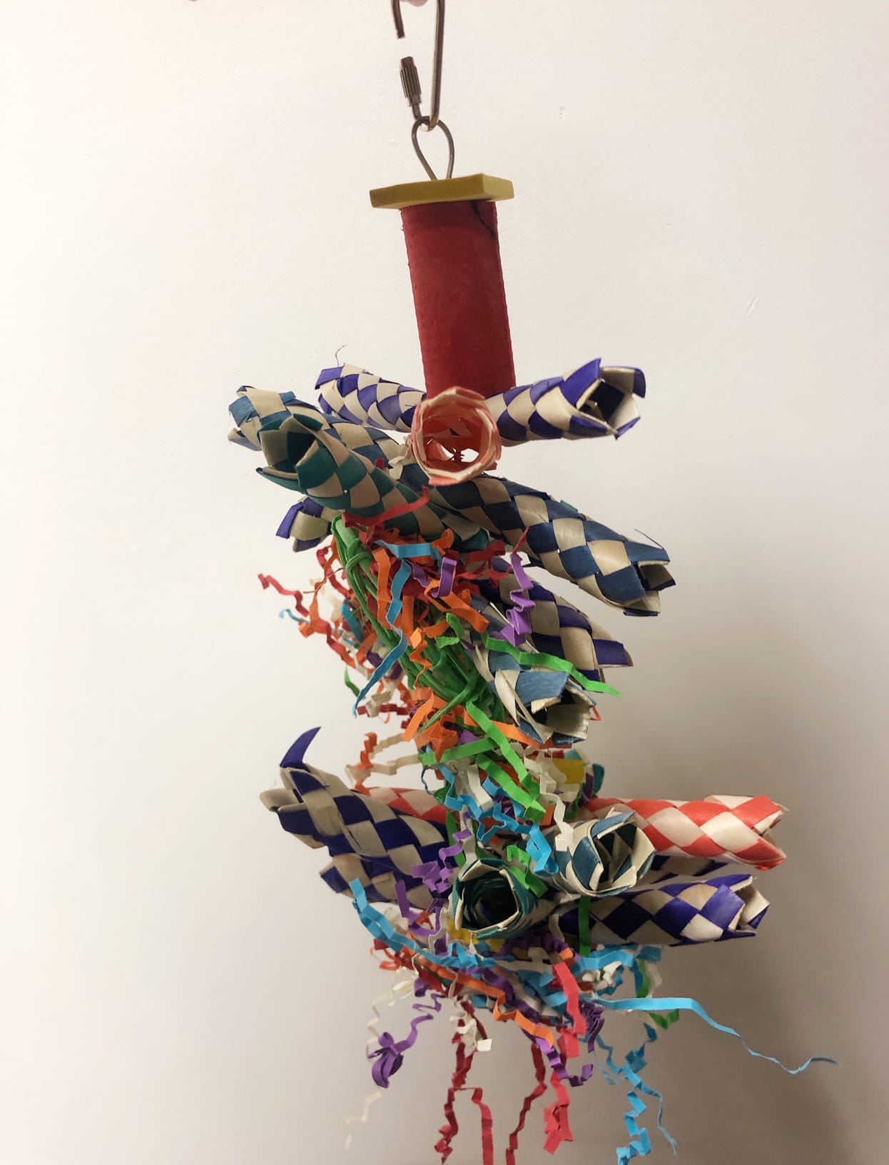 Ta kolorowa i atrakcyjna zabawka zapewni rozrywkę i stymulację dla wszystkich papug, niezależnie od ich rozmiaru czy gatunku. Może być używana zarówno przez małe nimfy, jak i większe papugi takie jak barwinki, amazonki, kakadu, żako czy ary.