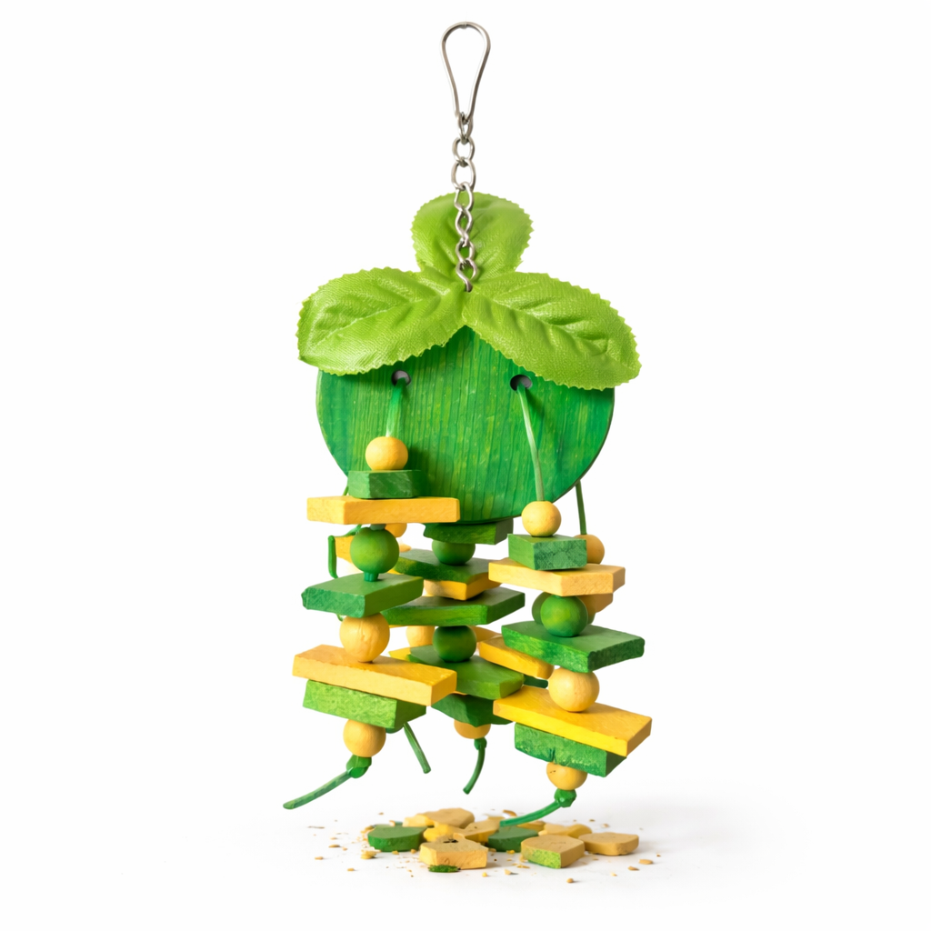 Soczyste Jabłuszko to klasyczna zabawka dla papug, zaprojektowana z myślą o ptakach, które uwielbiają gryźć, skubać i manipulować elementami. Konstrukcja oparta na miękkim drewnie i kolorowych koralikach zachęca do aktywnej zabawy i eksploracji.