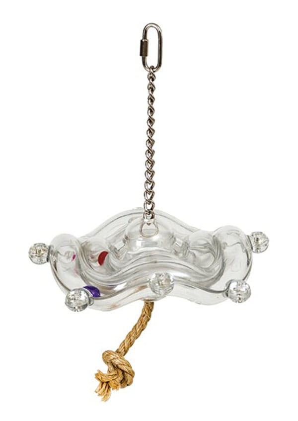 Spodek ufo, to bardzo ciekawa i trwała zabawka dla dużych papug. W środku spodka znajduja się szczelnie zamknięte kulki, ktore przy każdym ruchu zabawki wydają dzwięk,