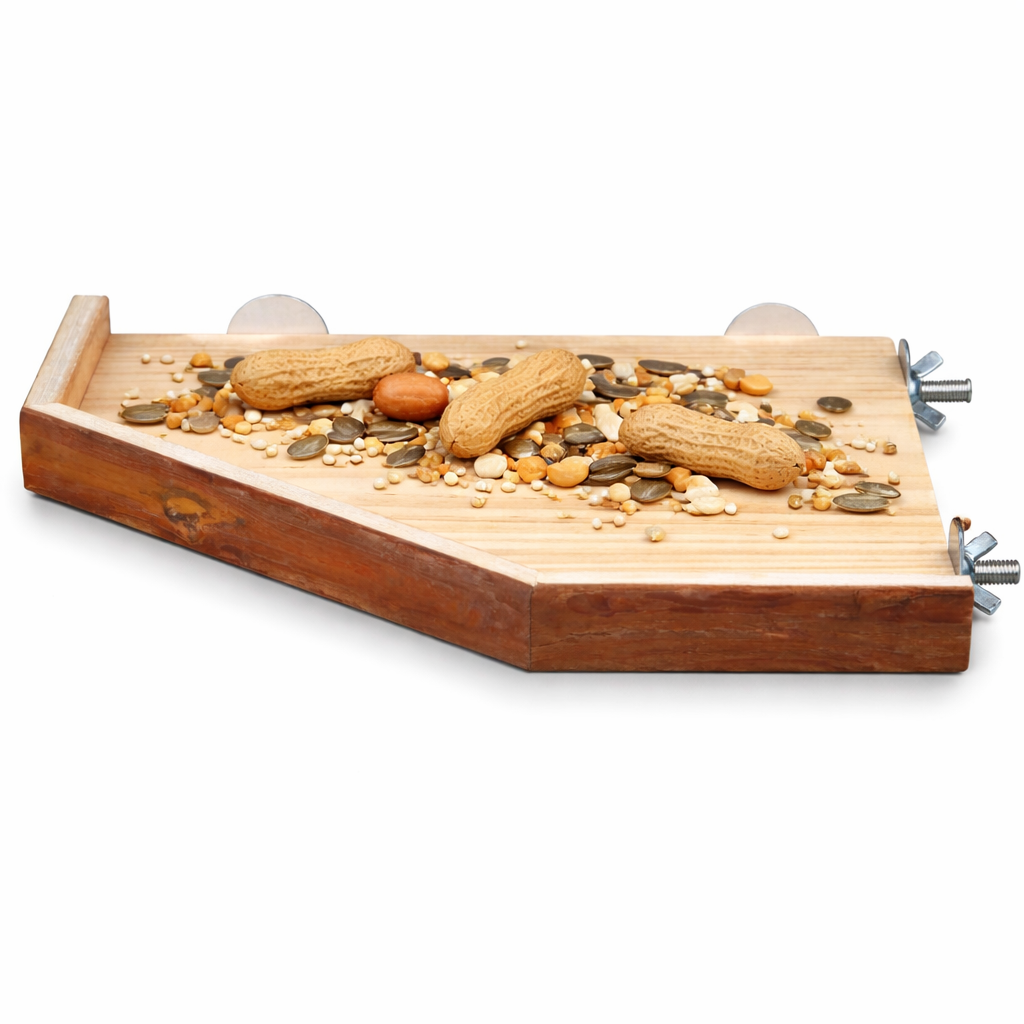 Stolik dla PaPug M/L to wielofunkcyjna, stabilna platforma wykonana w całości z naturalnego drewna. Może służyć jako miejsce do podawania nagród, świeżych owoców i warzyw, a także jako dodatkowa żerdź lub punkt odpoczynku.