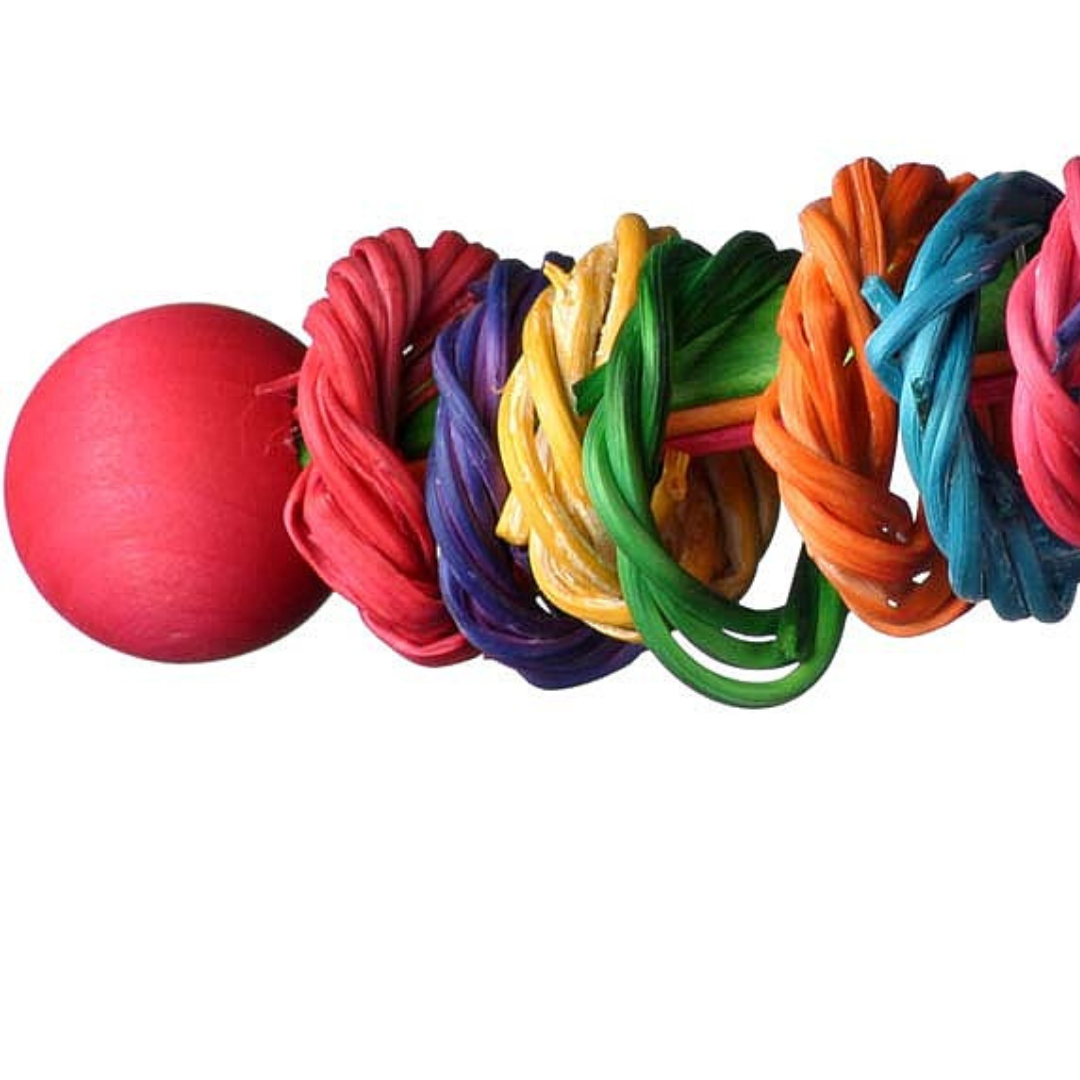 Papugi bardzo chętnie sięgają po tą zabawkę. Zazwyczaj na początku dobierają się do obręczy osadzonych na sztandze a na sam koniec zostawiają sobie okrągłe kule zakończające zabawkę.