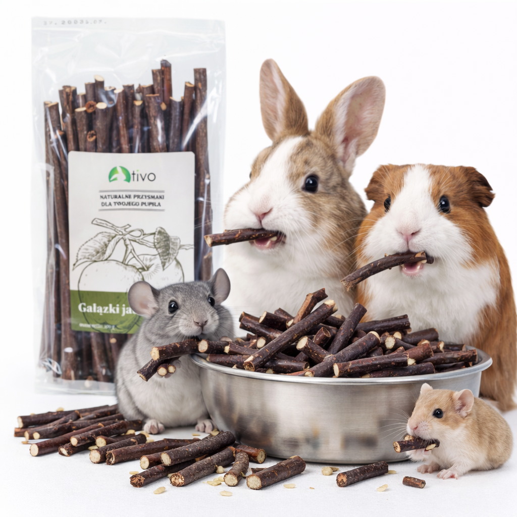 Gałązki jabłoni TIVO to w 100% naturalny produkt przeznaczony dla wszystkich gryzoni. Starannie suszone gałązki zachowują naturalną strukturę i aromat, dzięki czemu są chętnie obgryzane przez zwierzęta.
