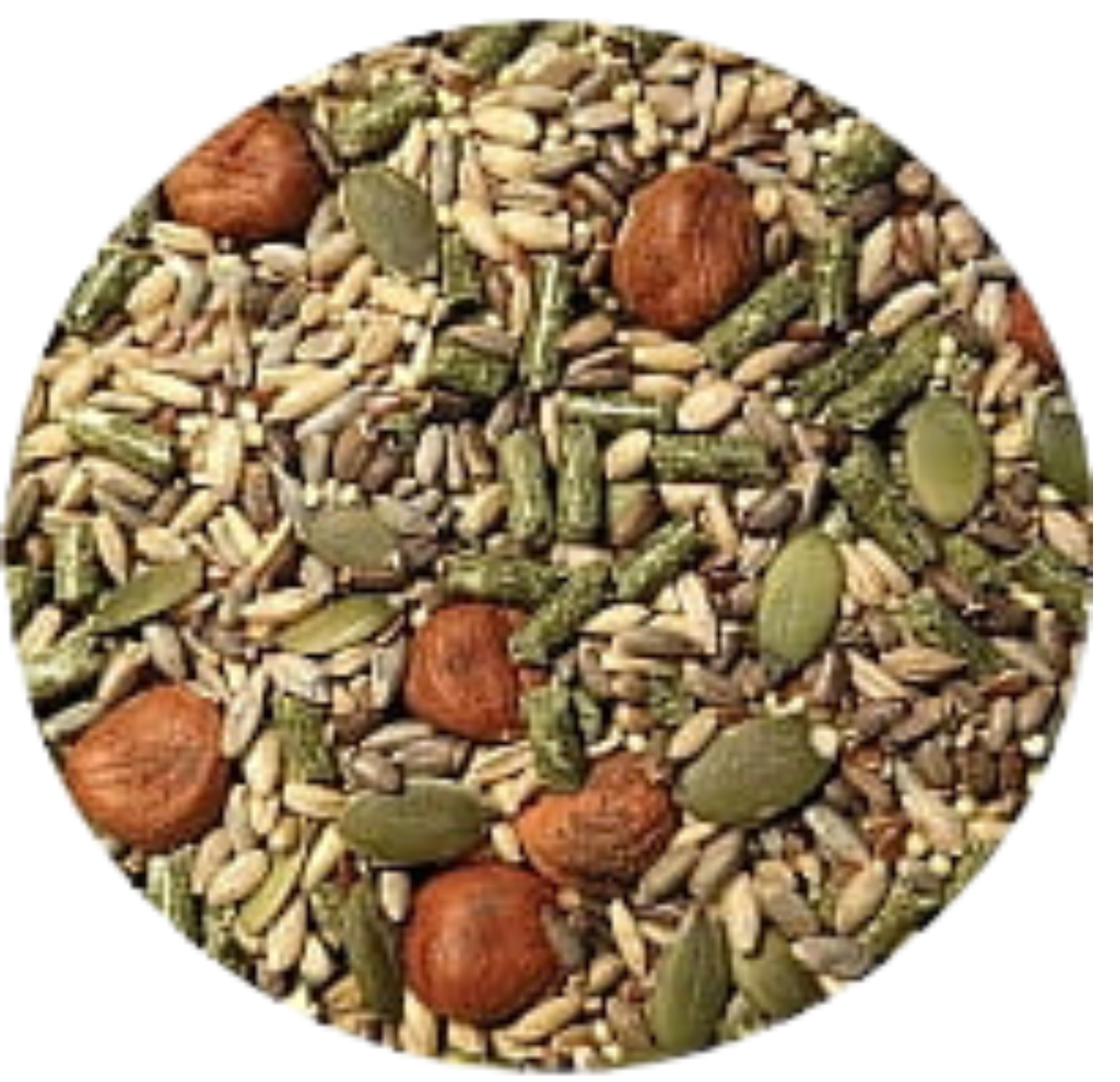 Granulki mieszanki wykonane są ze składników organicznych i bardzo chętnie są one zjadane przez większość ptaków. Nie zawierają żadnych wypełniaczy, takich jak soja lub kukurydza, BHA, BHT lub etoksychina.
