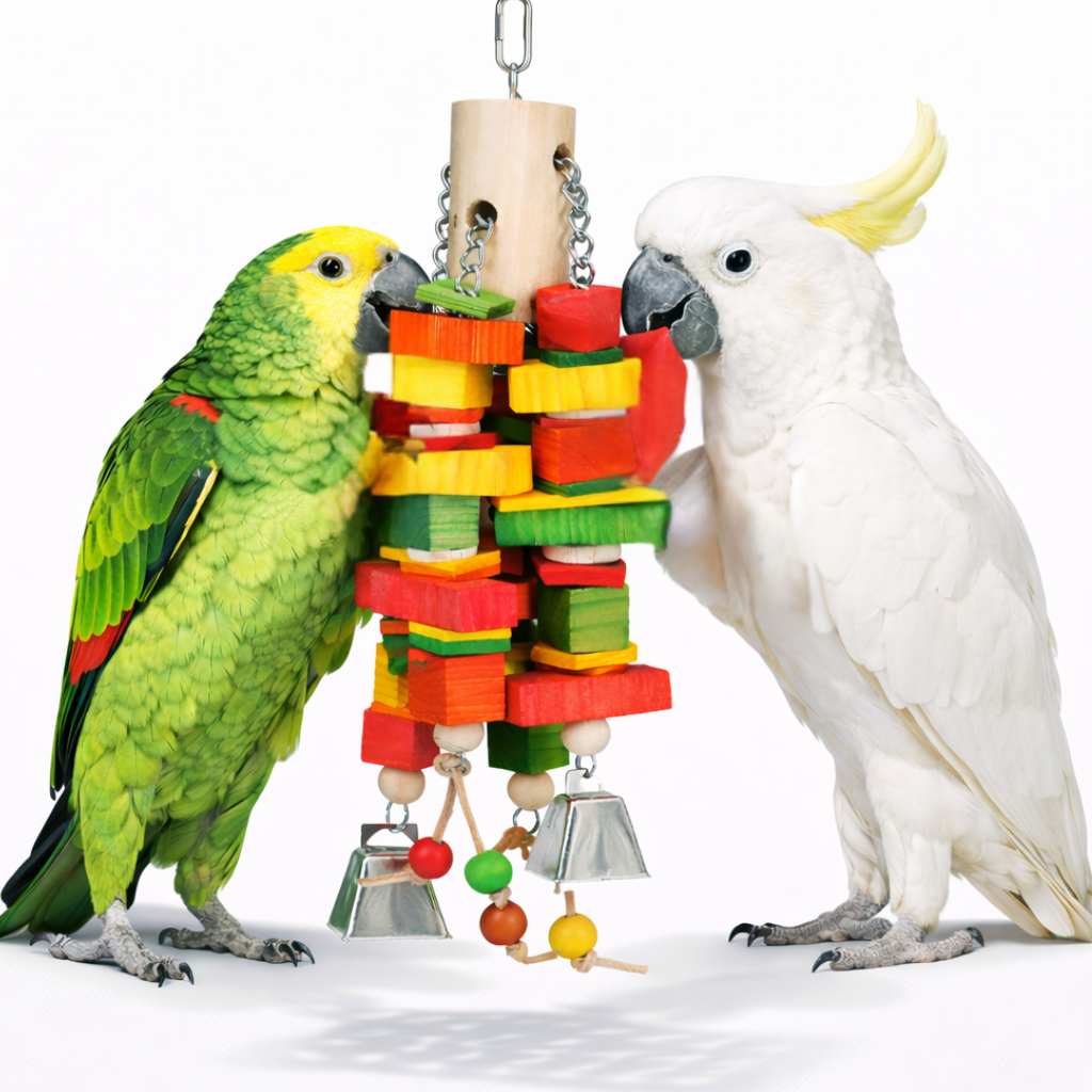 To produkt dla papug, które szybko niszczą standardowe zabawki i potrzebują mocniejszej konstrukcji. Duże elementy drewniane pozwalają na bezpieczne, intensywne rozdrabnianie, wspierając naturalne instynkty żerowania i redukując nudę.