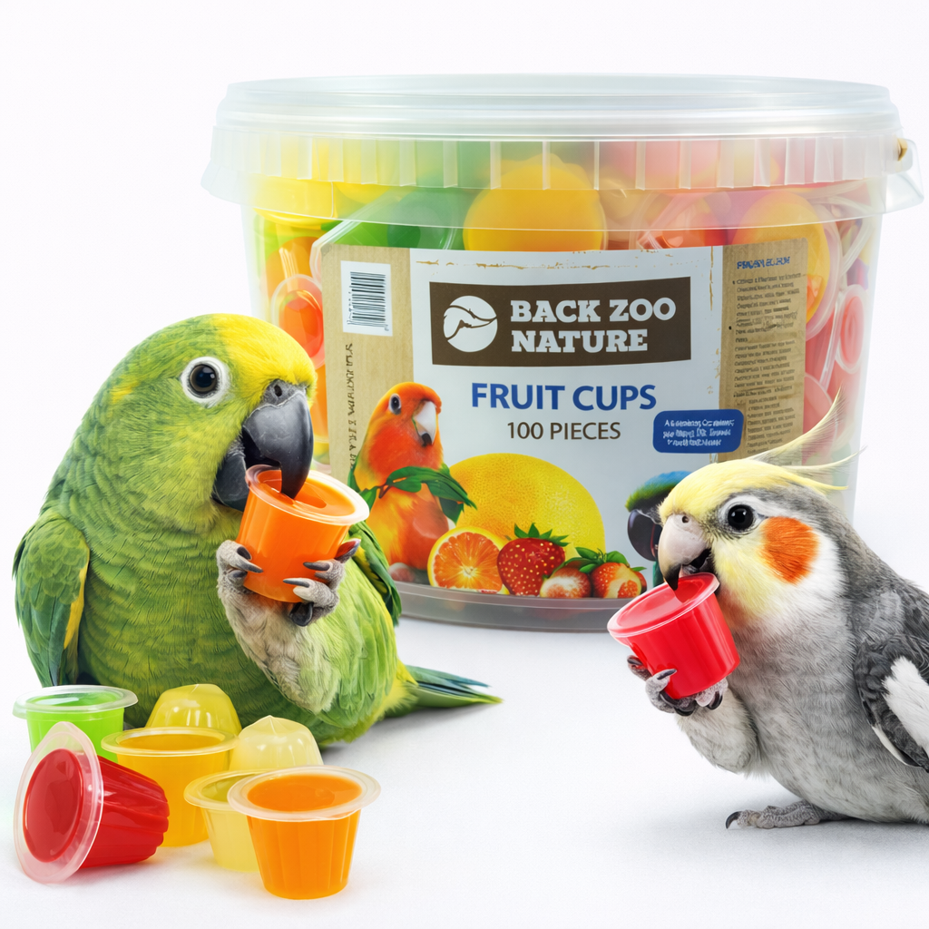 Galaretki podajemy papudze wraz z kubeczkiem, żeby mogła samodzielnie wydostać zawartość.