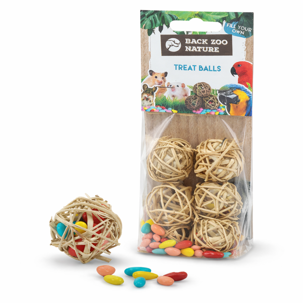 Zestaw zawiera 6 kulek o średnicy około 4 cm, dzięki czemu sprawdzą się zarówno u mniejszych, jak i większych gatunków. Naturalna struktura wikliny dostarcza dodatkowych bodźców sensorycznych i zachęca do bezpiecznego skubania.