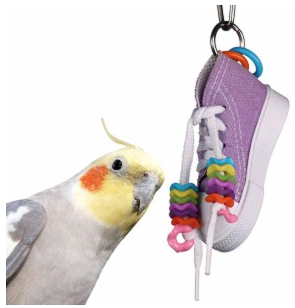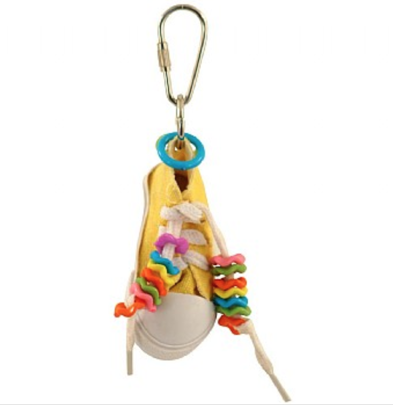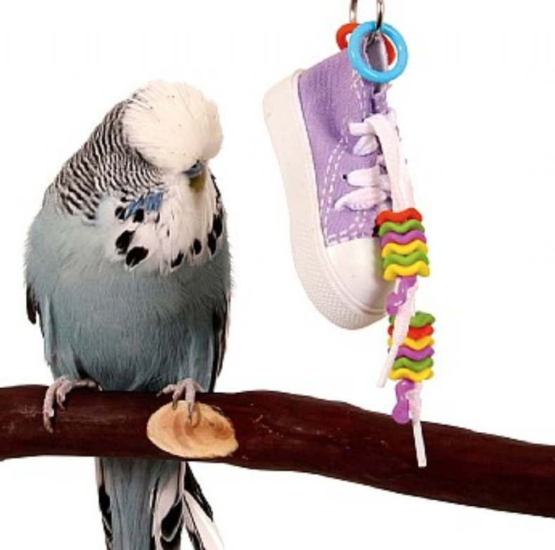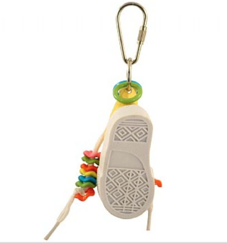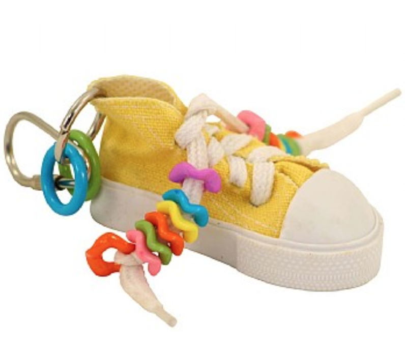 Trampek to bez wątpienia jedna z najczęściej wybieranych zabawek. Bez znaczenia gatunek, czy rozmiar papugi. Trampkiem cieszyć potrafi się każda papuga. I duża i mała.