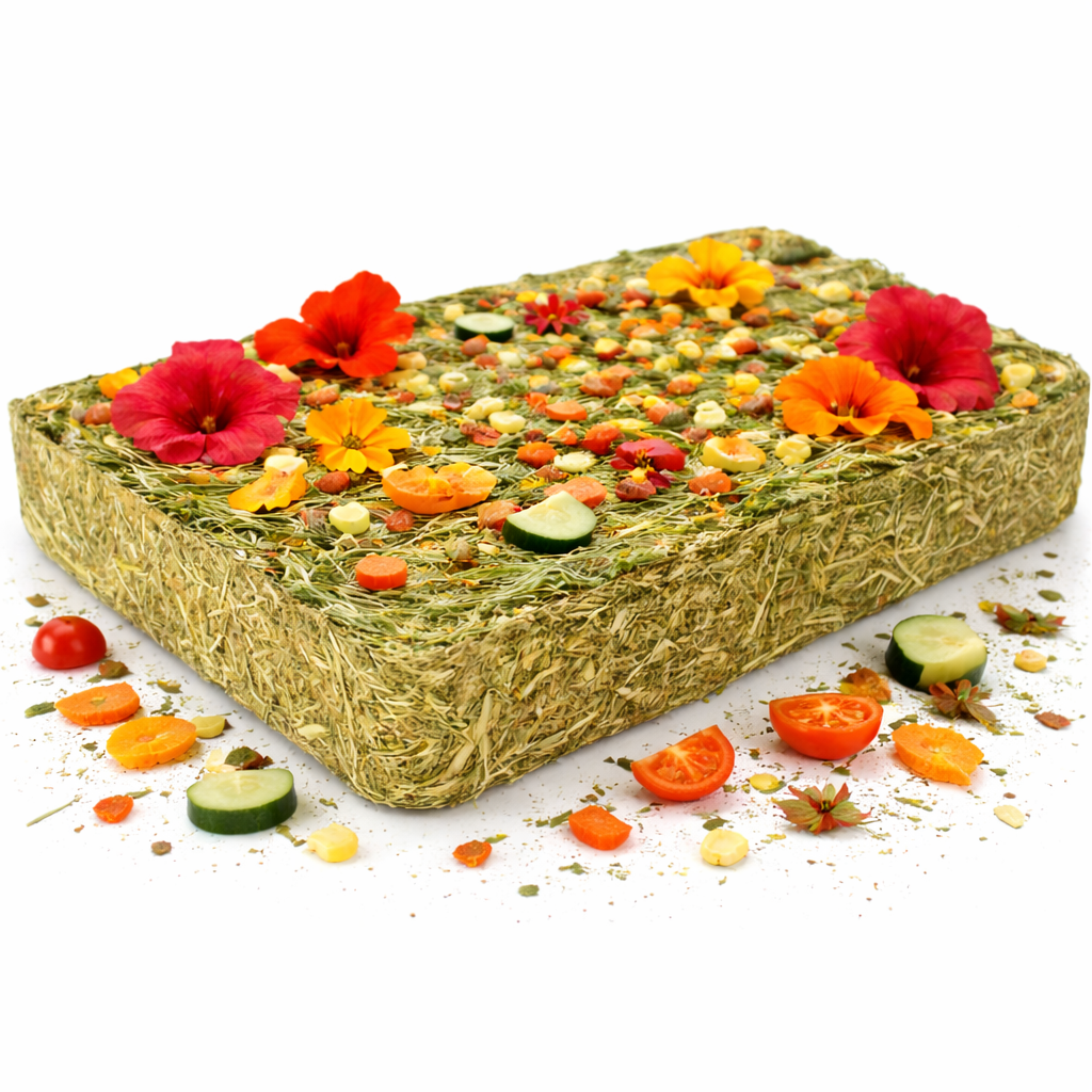 Witaminowa Łąka Ziołowa z Warzywami to naturalna mieszanka całych roślin, ziół i warzyw umieszczonych w strukturze przypominającej prawdziwe podłoże łąkowe. Papuga może odkrywać, eksplorować, dziobać i aktywnie poszukiwać pokarmu dokładnie tak, jak robiłaby to na wolności.