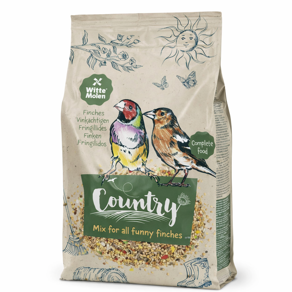 Witte Molen Country Pokarm dla ziarnojadów 600 g to zbilansowana mieszanka nasion przeznaczona do codziennego żywienia małych ptaków ziarnolubnych, określanych często jako finches (ziarnojady). Karma została przygotowana tak, aby odpowiadać naturalnym potrzebom takich gatunków jak amadyny, astryldy, zeberki, ryżowce oraz inne ptaki egzotyczne żywiące się głównie ziarnem.