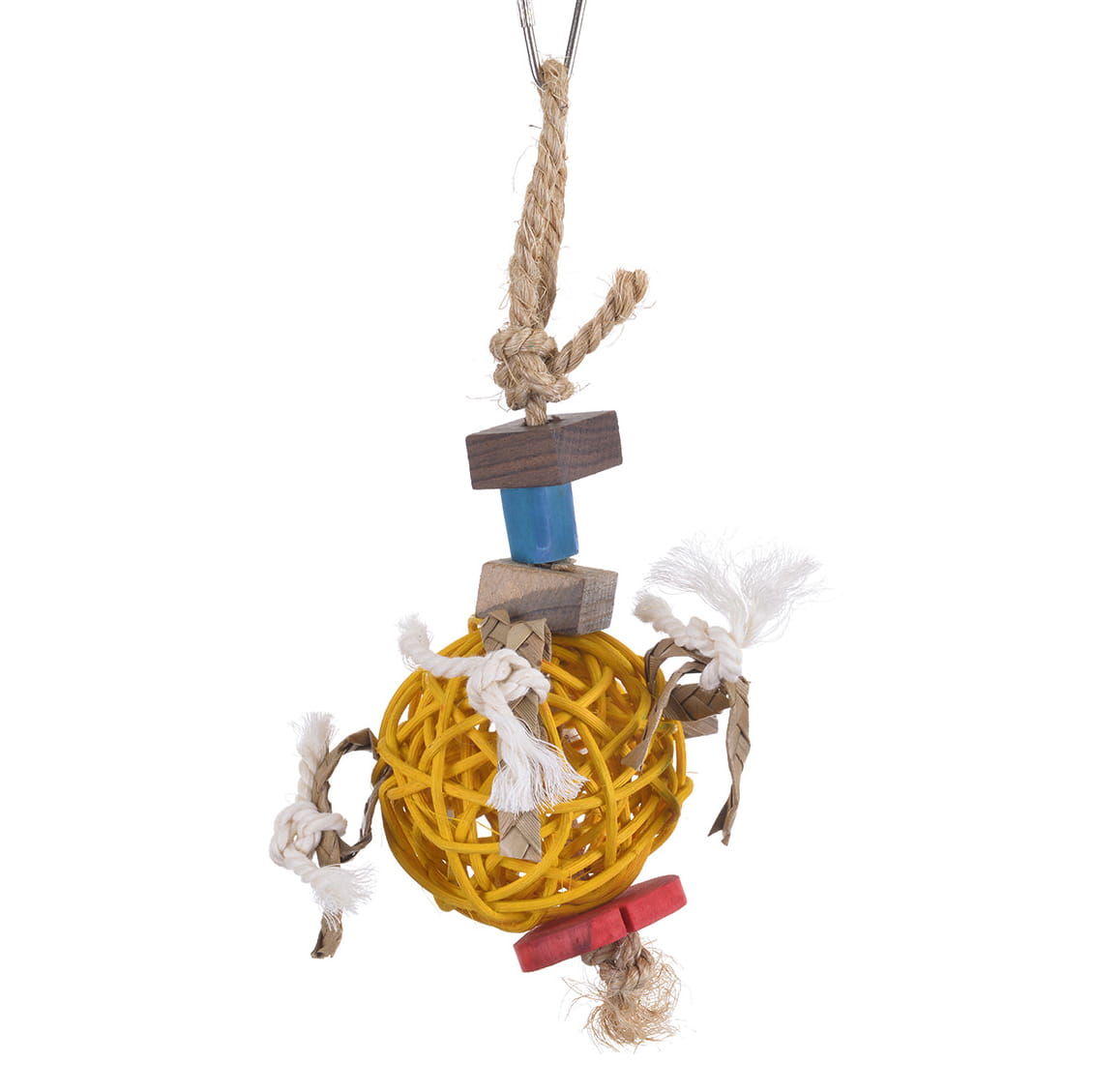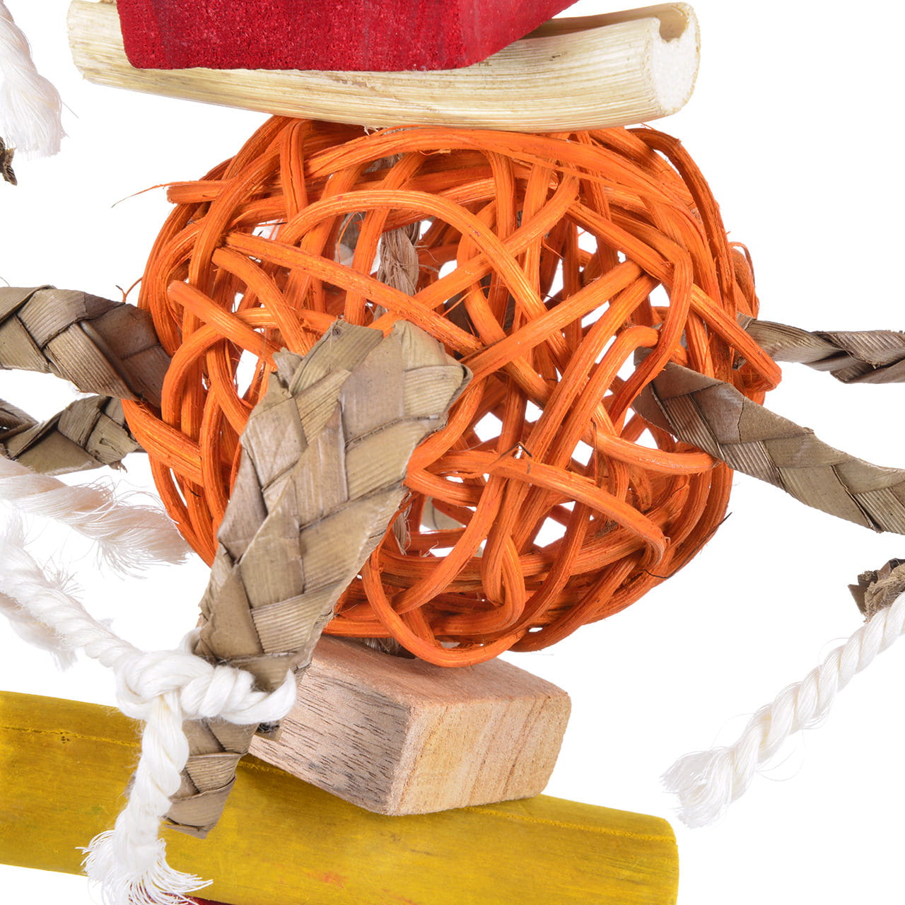 Poprzez kolorowe drewniane klocki, rattanowe kulki i wbudowany materiał, twoja papużka ma do wyboru wiele opcji, gdzie zacząć gryźć i niszczyć