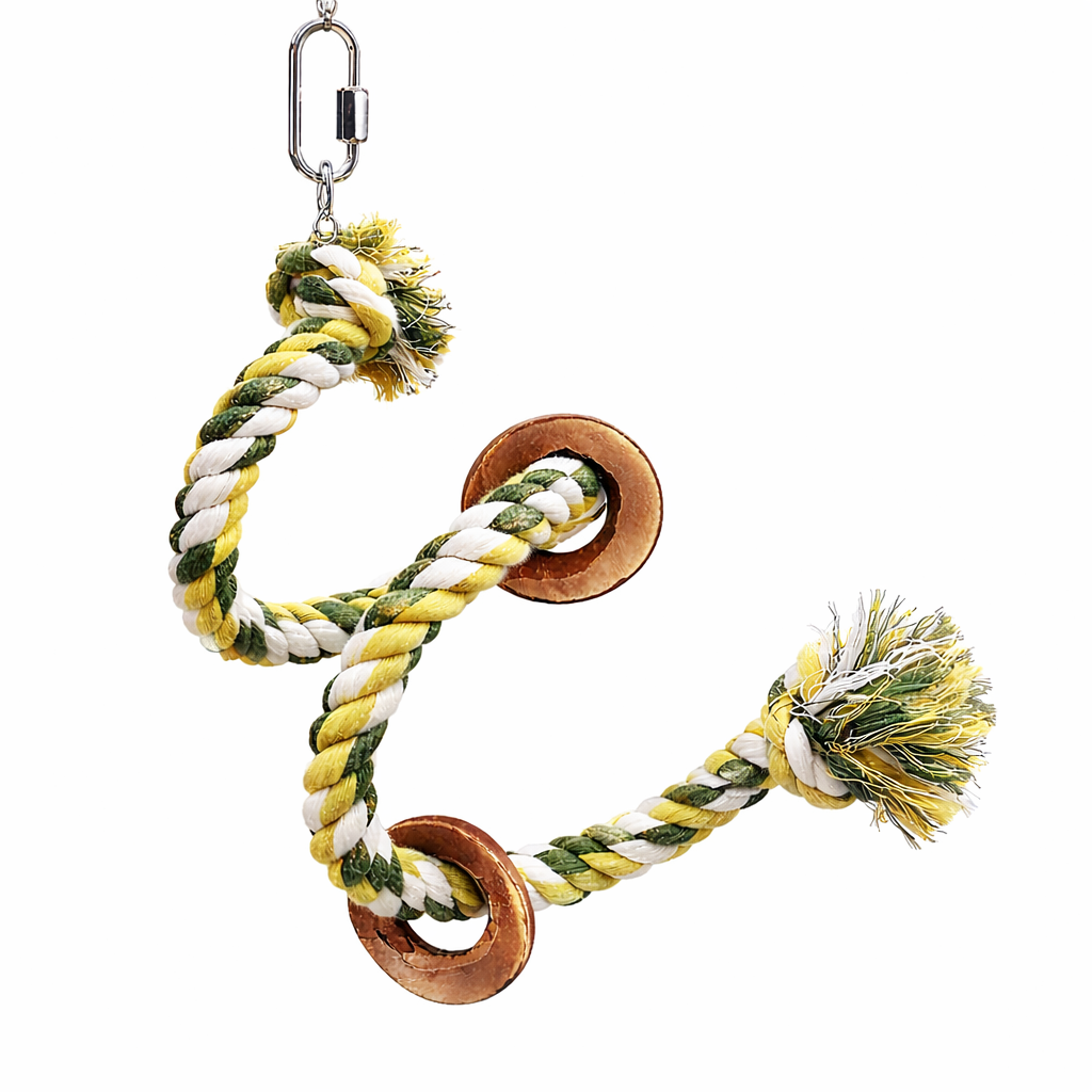 Wykonana w 100% z bawełny, jest przyjemna w dotyku i zapewnia pewny chwyt. Spiralna forma zmusza papugę do lekkiej pracy równowagi, co pozytywnie wpływa na jej sprawność.