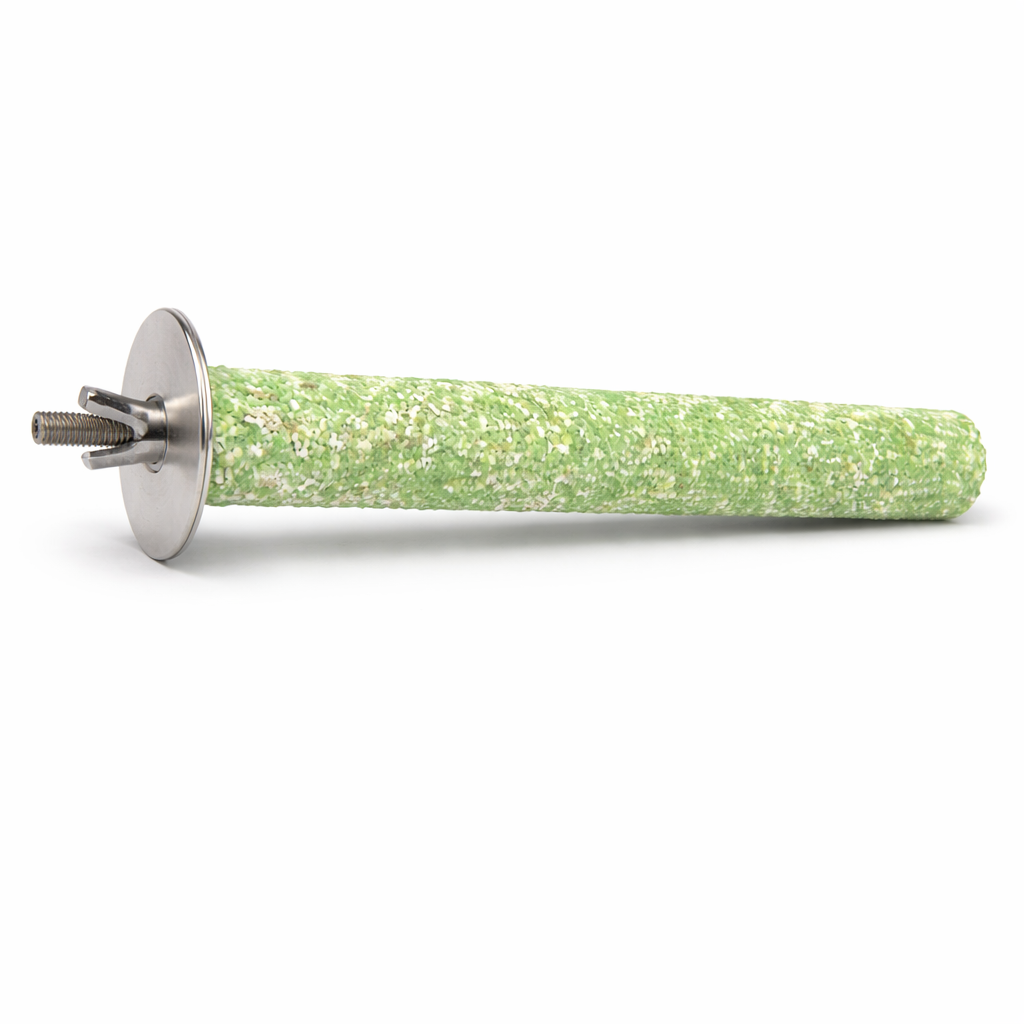 Stożkowy kształt wspiera również komfort chwytu i daje większą różnorodność ułożenia łapek niż klasyczna żerdź o stałej średnicy. Dodatkowo papuga może podgryzać powierzchnię, co pomaga utrzymać dziób w dobrej kondycji.