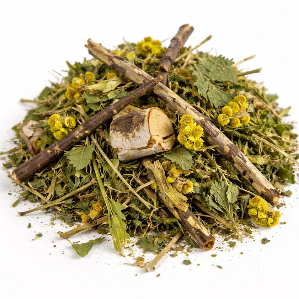 Ziółka i Gałązki dla Kawii Domowej to bogata, naturalna mieszanka roślinna stworzona z myślą o gryzoniach, w szczególności kawii domowej. Połączenie ziół, liści, owoców i gałązek drzew owocowych zapewnia różnorodność smaków, struktur i aromatów.